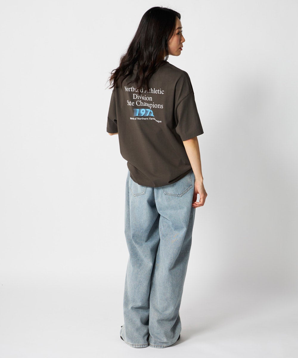 カレッジ・バックロゴTシャツ。「トラッド×スポーティー」な雰囲気が魅力です。洗練されたタイポグラフィ が際立つ、知的なストリートスタイルにぴったりの1枚です。洗練された「モダン・カレッジ」スタイル 伝統 的なカレッジロゴをベースにしつつも、あえてイラストを排除し、文字の美しさだけで魅せる大人なアプローチ しました。セリフ体をメインに使うことで、カジュアルなTシャツに「上品さ」と「クラシック感」をプラスし ています。大人なスポーツカジュアルを楽しめます!