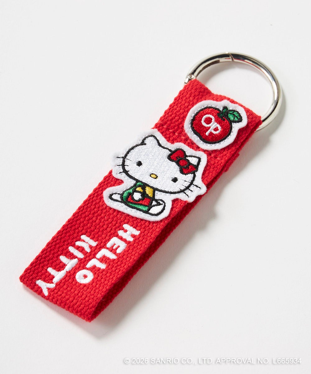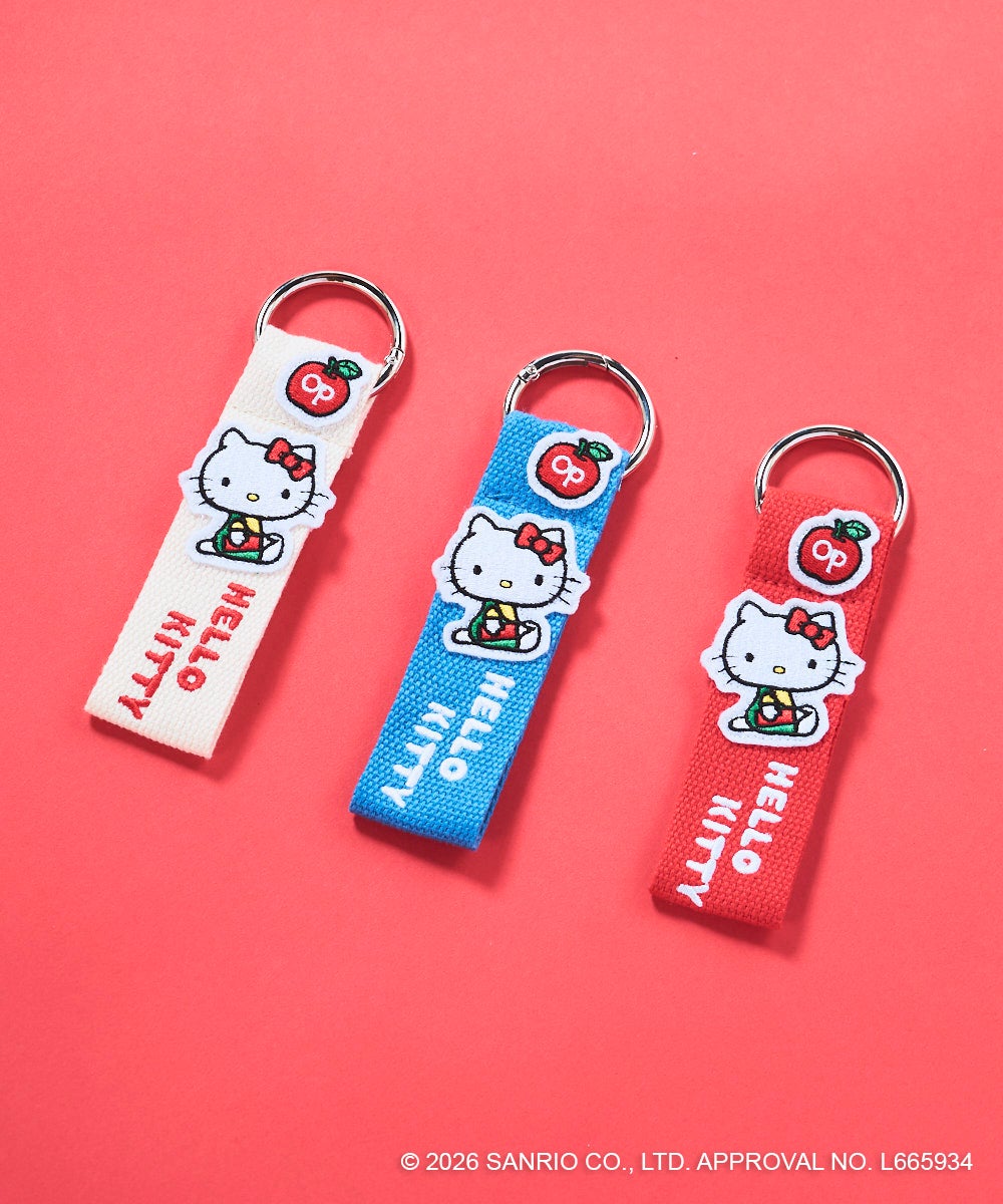 トレンドのネームタグに「HELLO KITTY」のロゴ刺しゅうと、ワッペンをあしらったバッグチャーム♪丸型カラビナ付きで、バッグやポーチ、鍵などに取り付けOK。