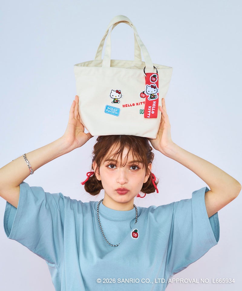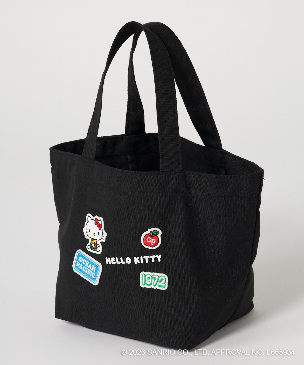 ハローキティのワッペンやロゴをあしらった、ポップで遊び心のあるミニトートバッグ♪しっかりとしたマチのあるフォルムで、ちょっとしたお出かけやランチトートとして使いやすいサイズ感です。
