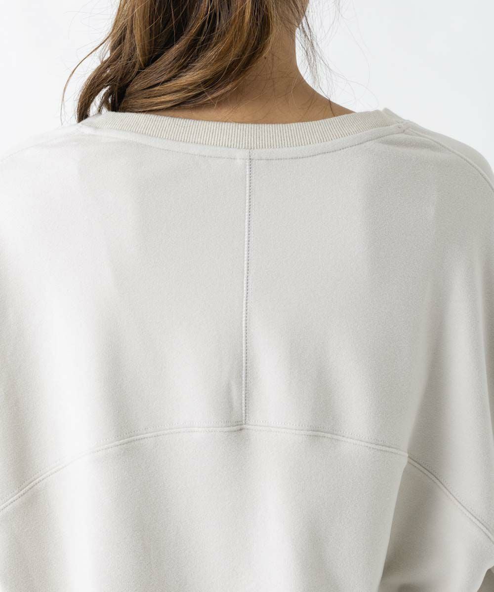あったか起毛ポンチ素材のクルーネックプルオーバー。