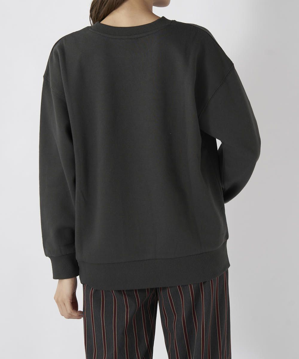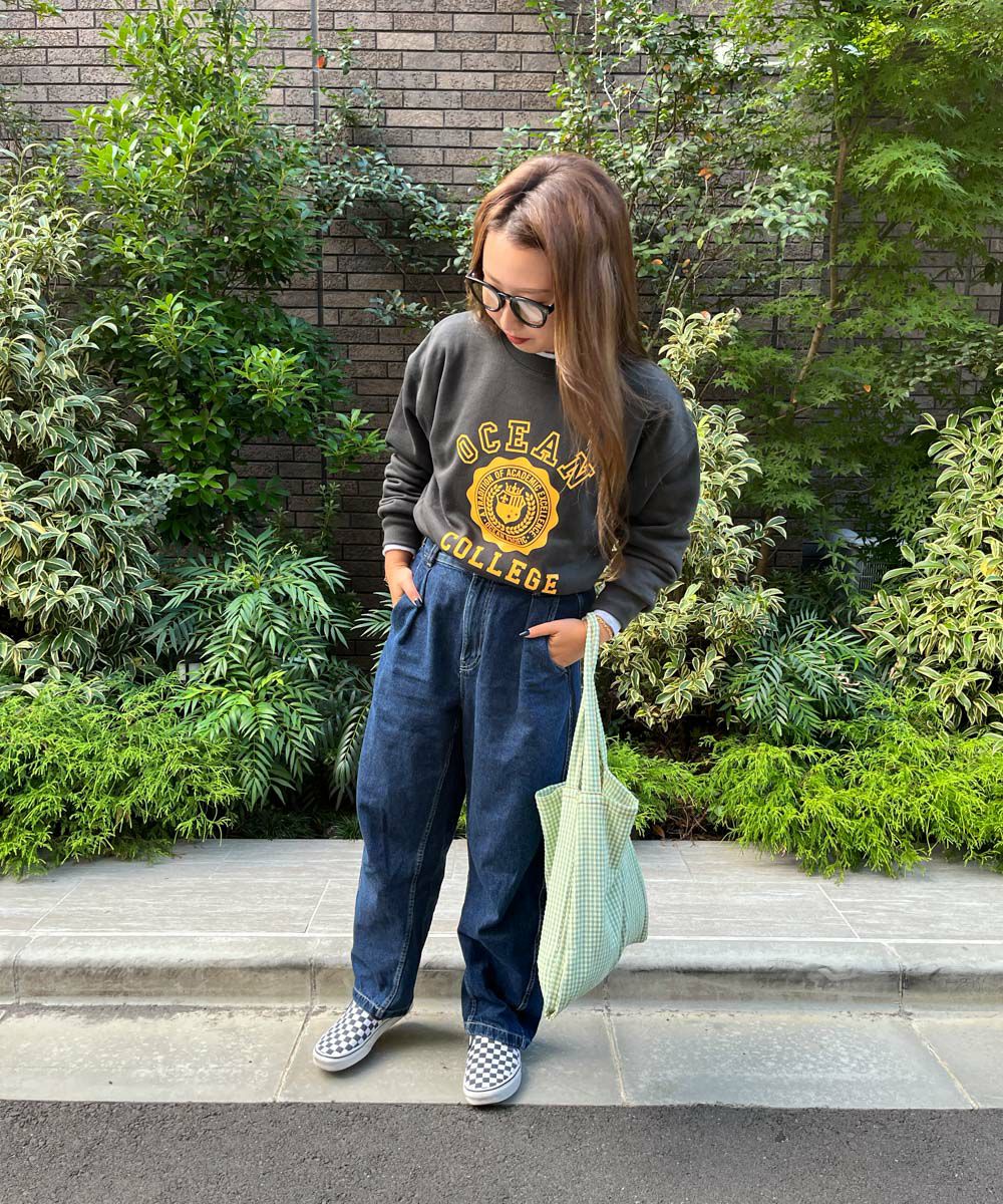 人気のカレッジロゴデザインのスウェットです。1枚で着るのはもちろん、薄手のタートルネックなどと合わせたレイヤードスタイルもおすすめです。ドロップショルダーなのでカジュアルになりすぎず、女性らしく着こなせます。
