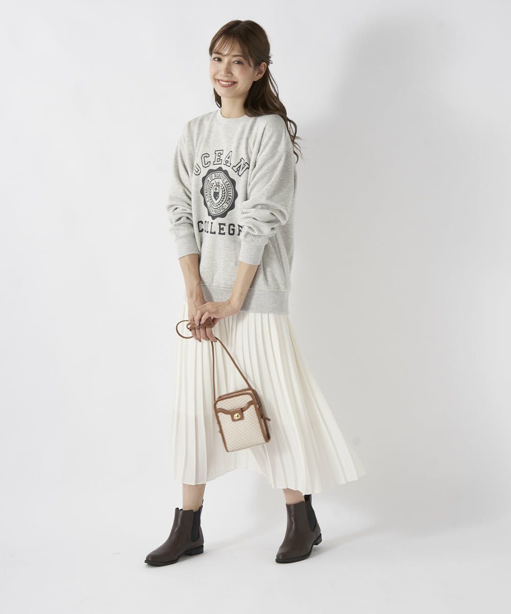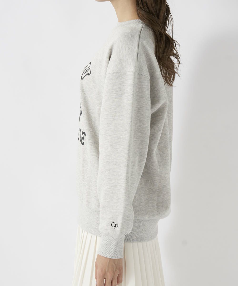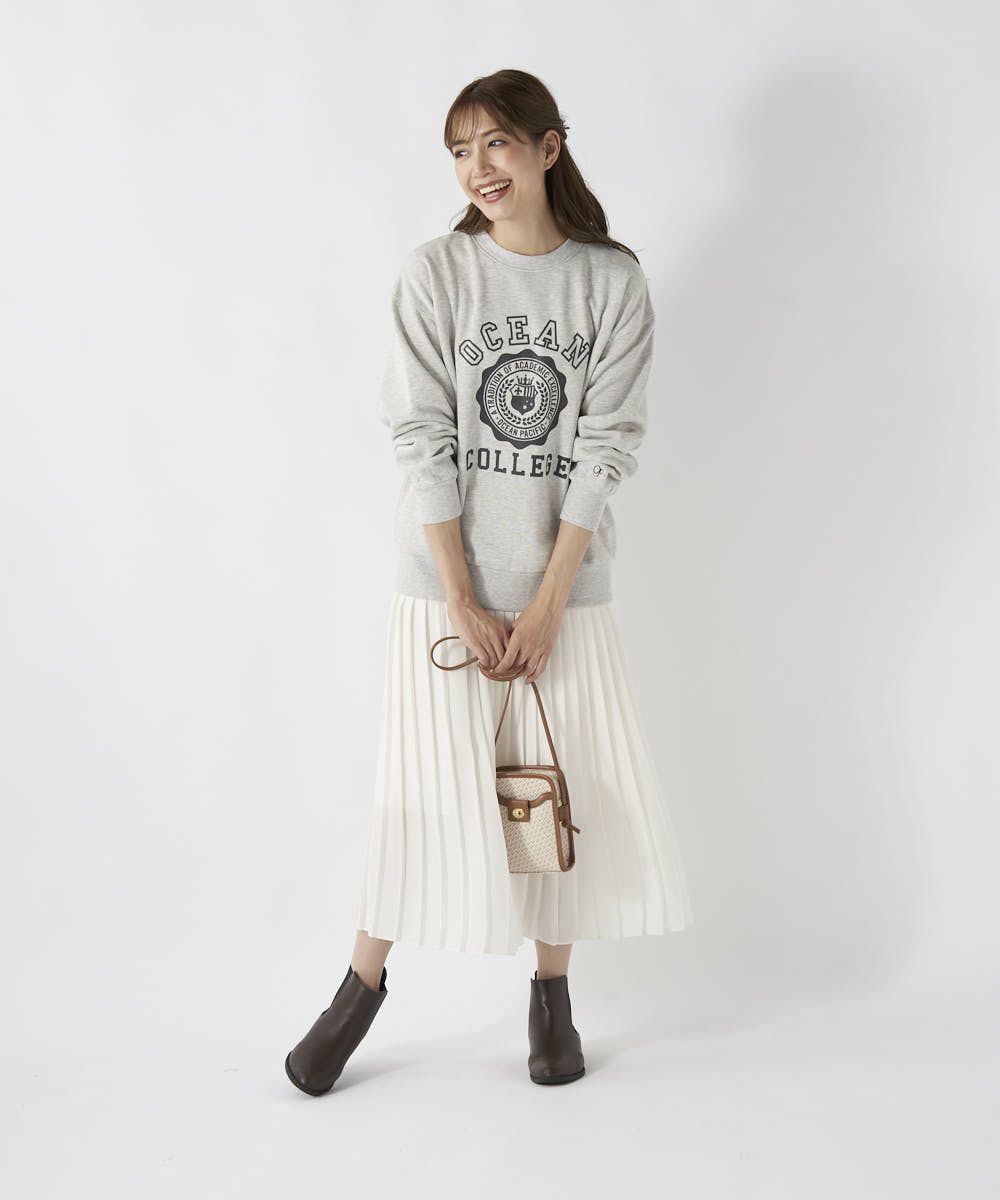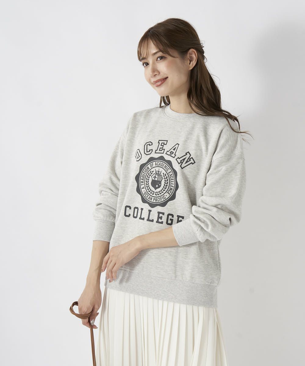 人気のカレッジロゴデザインのスウェットです。1枚で着るのはもちろん、薄手のタートルネックなどと合わせたレイヤードスタイルもおすすめです。ドロップショルダーなのでカジュアルになりすぎず、女性らしく着こなせます。