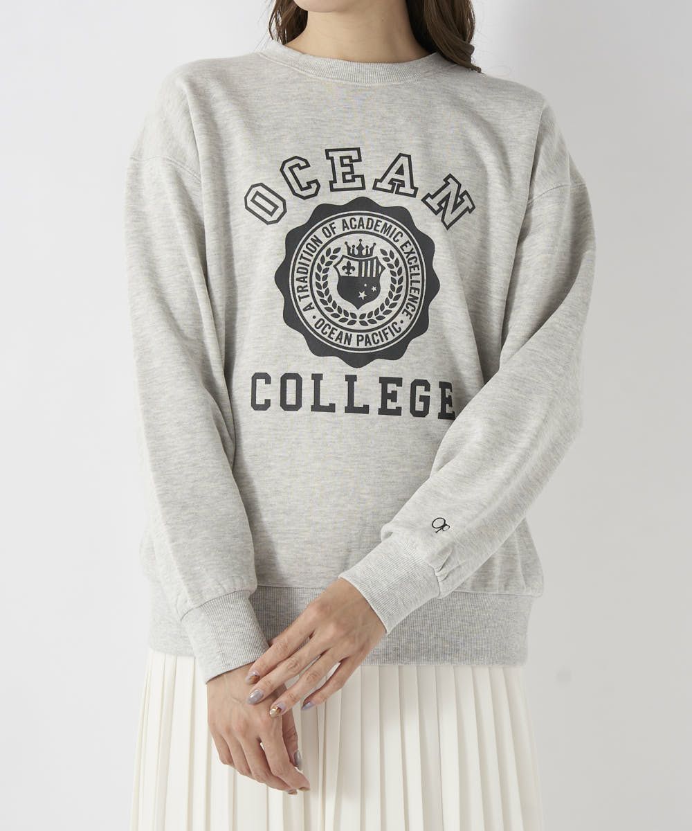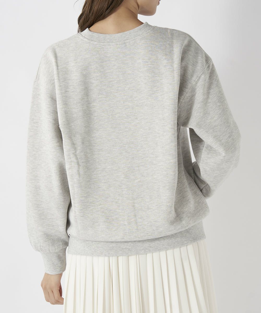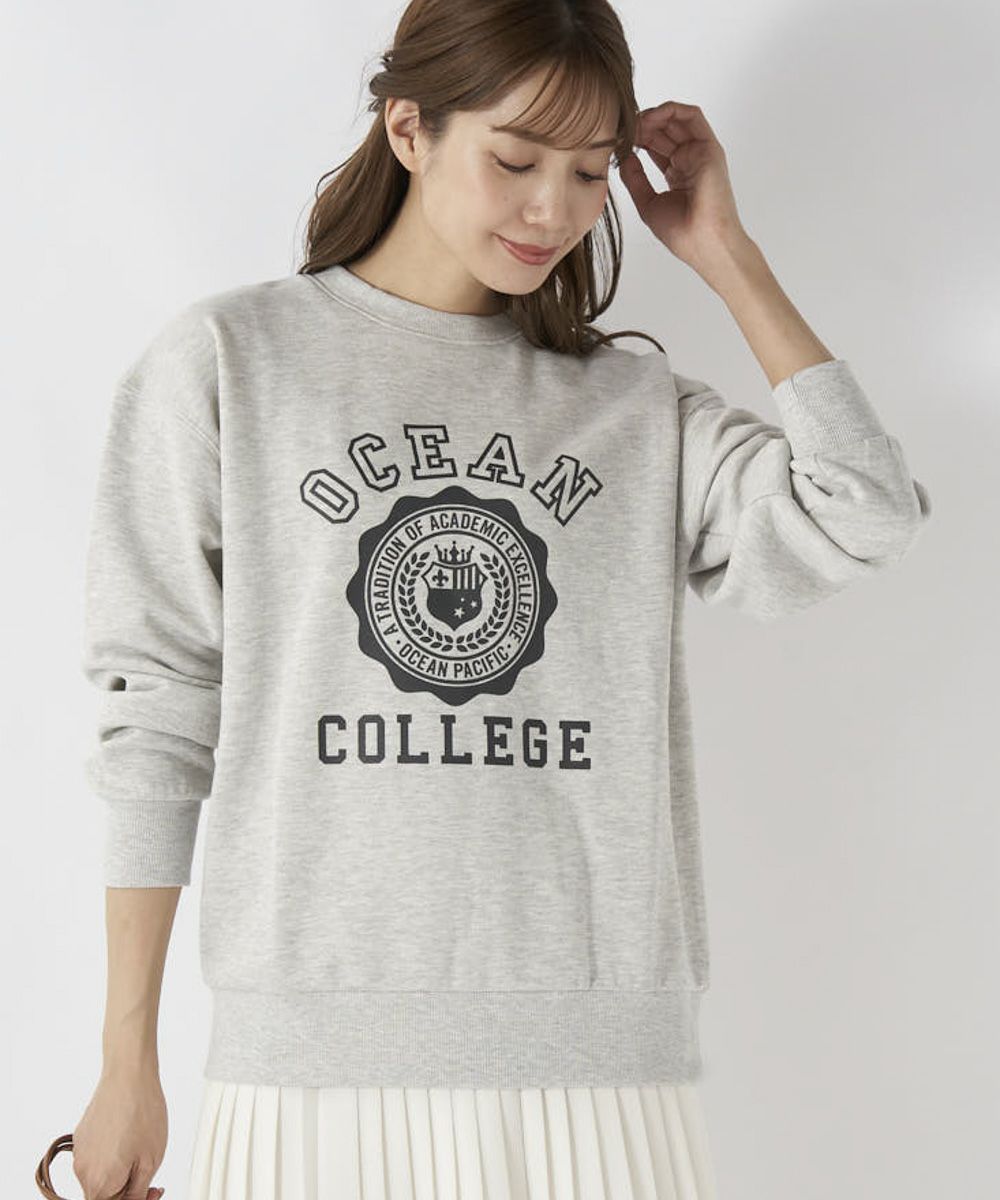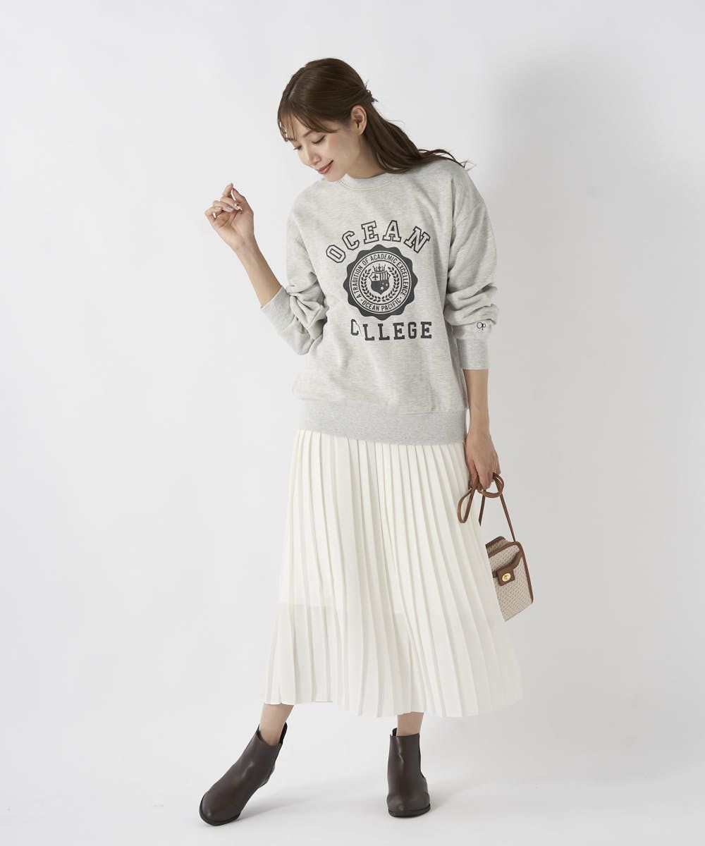 人気のカレッジロゴデザインのスウェットです。1枚で着るのはもちろん、薄手のタートルネックなどと合わせたレイヤードスタイルもおすすめです。ドロップショルダーなのでカジュアルになりすぎず、女性らしく着こなせます。