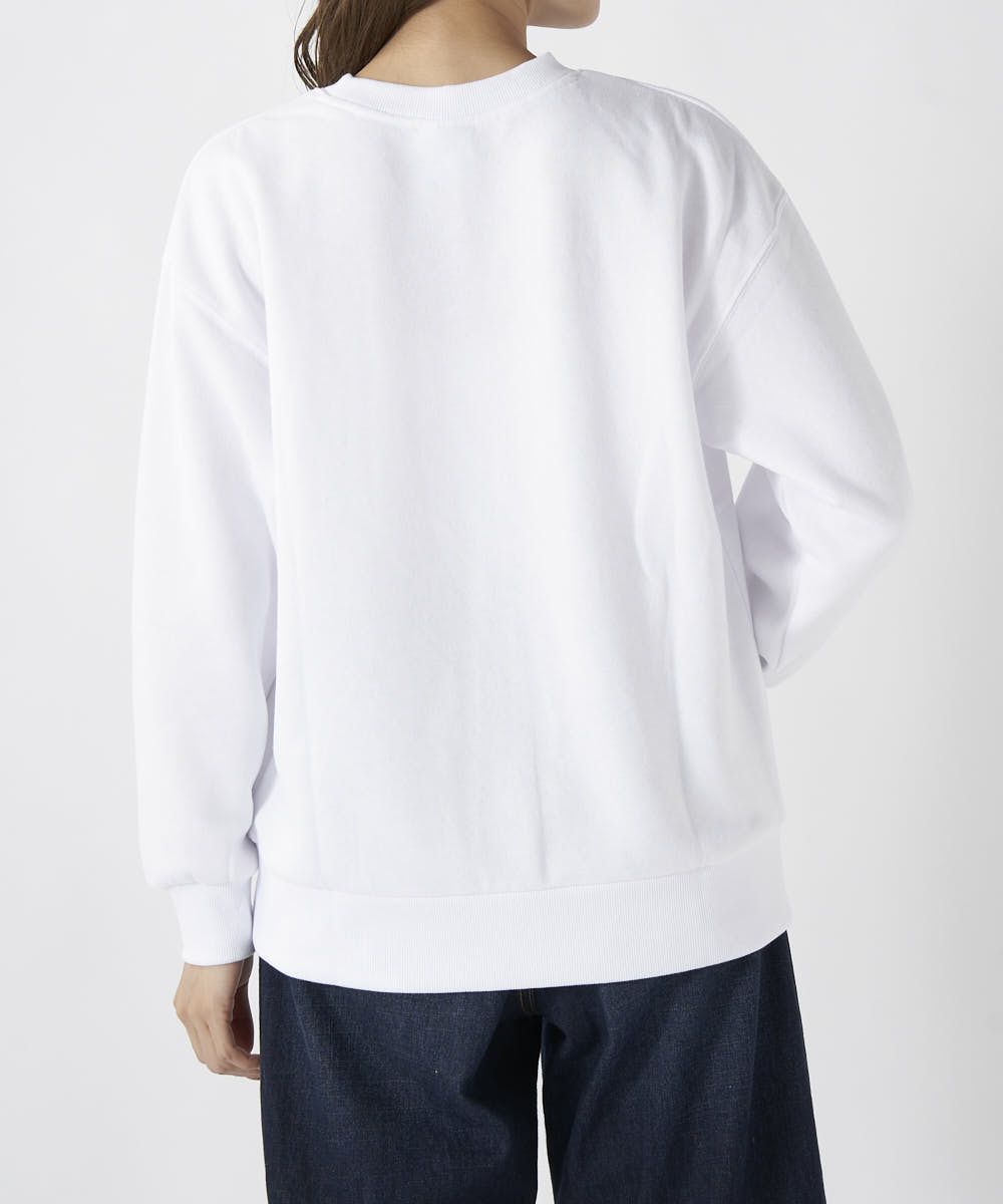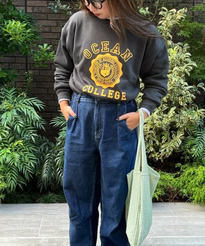 人気のカレッジロゴデザインのスウェットです。1枚で着るのはもちろん、薄手のタートルネックなどと合わせたレイヤードスタイルもおすすめです。ドロップショルダーなのでカジュアルになりすぎず、女性らしく着こなせます。