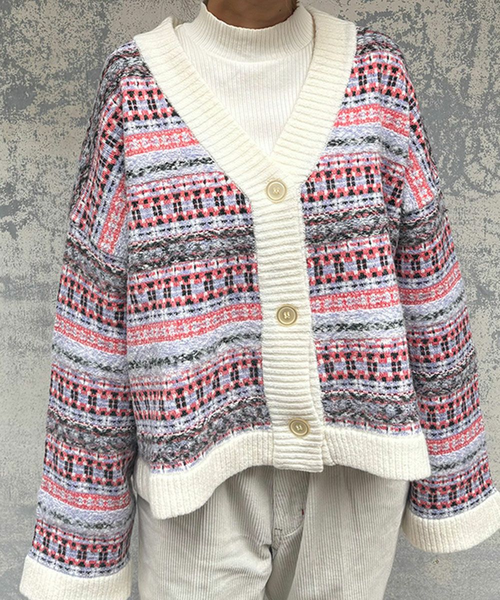 レディース ジャガードニットカーディガン
