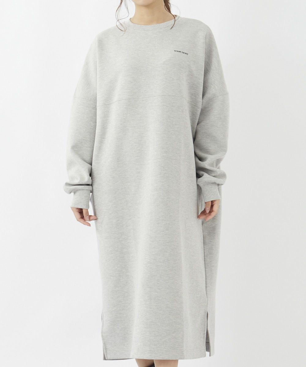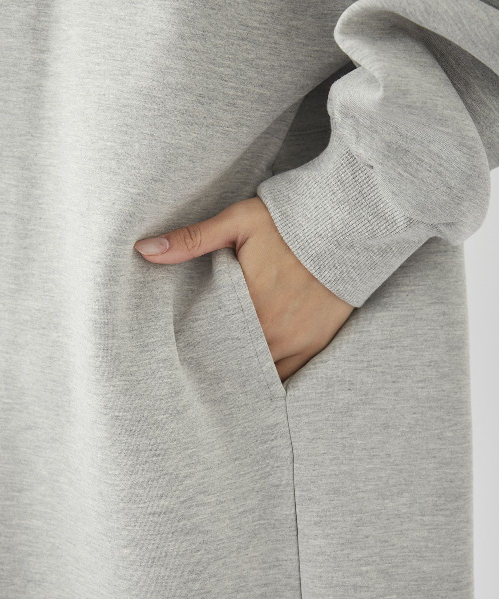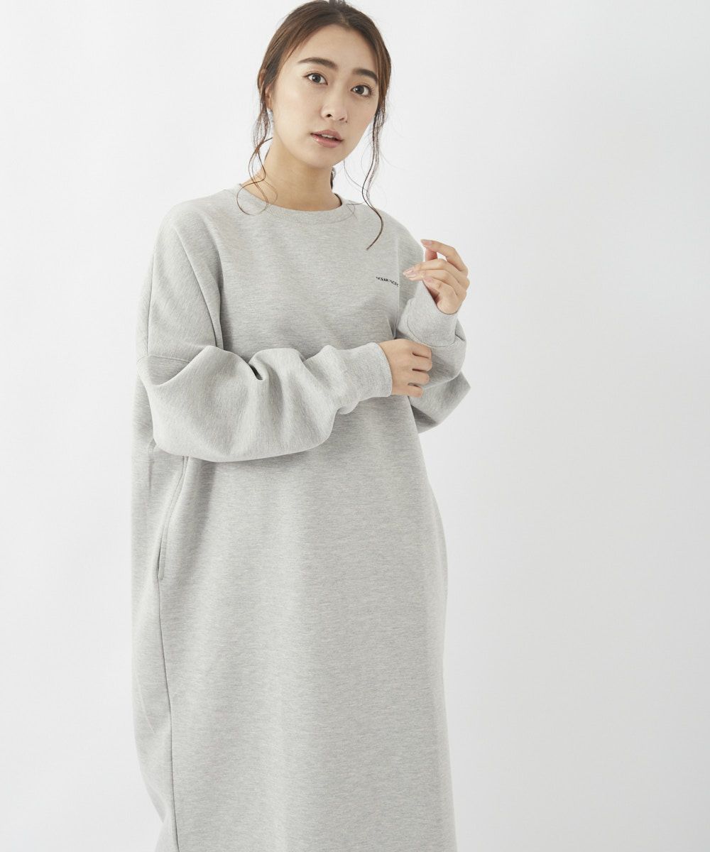 身体のラインを拾うことなくざっくりとスタイリングできる、スウェット素材のロングワンピース。胸元にあしらった小さなロゴが、ちょっとした着こなしのアクセントに。サイドにはポケット付きで、実用性も◎。