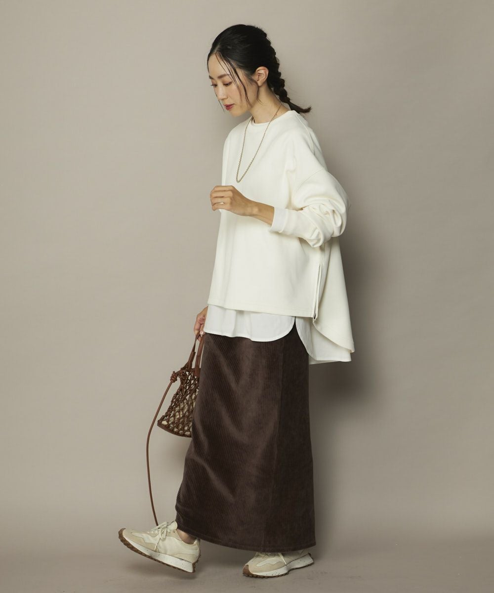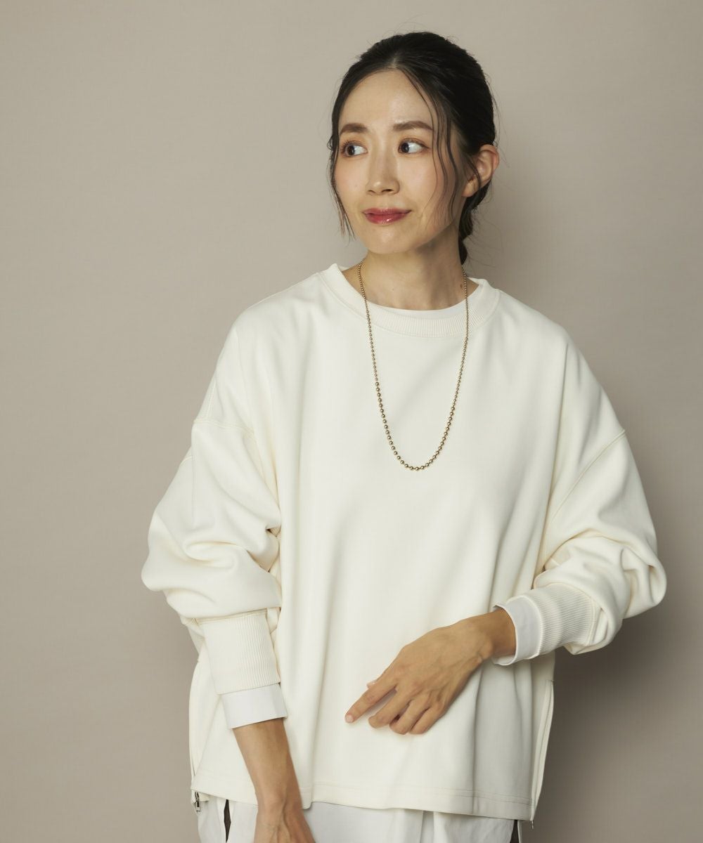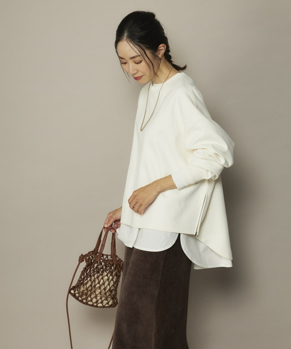 軽量で保温性があり、UVカット付き、伸縮性があり、シワになりにくくお家でのお手入れも簡単。立体感と軽やかさのある素材に、サイドジップや前後差ヘムなど、ディテールにこだわったアイテムです。美シルエットと快適さを両立!裾サイドジップ付きダンボールニットプルオーバー。しなやかで立体感のあるダンボールニット素材を使用した、大人カジュアルなプルオーバー。