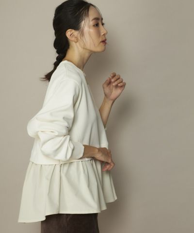 軽量で保温性があり、UVカット付き、伸縮性があり、シワになりにくくお家でのお手入れも簡単。ダンボールニットと布帛カットソーの異素材ドッキングトップスです。1枚でレイヤードスタイルが完成する、デザイン性と着回し力を兼ね備えた優秀アイテムです。異素材ミックスで洒落感UP!ドッキングデザイントップス。程よいハリと立体感が特徴のダンボールニットに、布帛素材をドッキング。