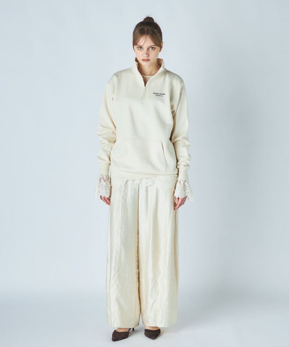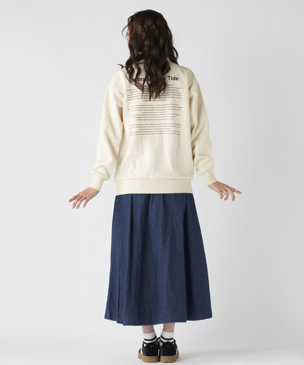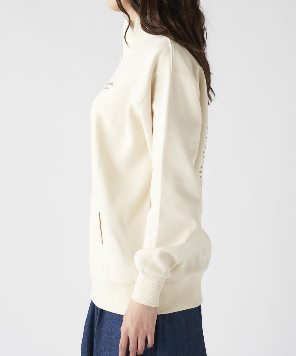柔らかくふんわり裏起毛で保温性◎軽量でもしっかり暖かく、ゆったりシルエットでストレスフリーな着心地。トレンド感と快適さを両立した、秋冬に大活躍間違いなしのアイテムとなっています。胸元のブランドロゴと、背中に大胆に施された英文メッセージが目を引くスウェット。カジュアルストリートなイメージで、ハーフジップ仕様なので、気温やスタイリングに合わせて襟元の表情を変えられるのが魅力です。