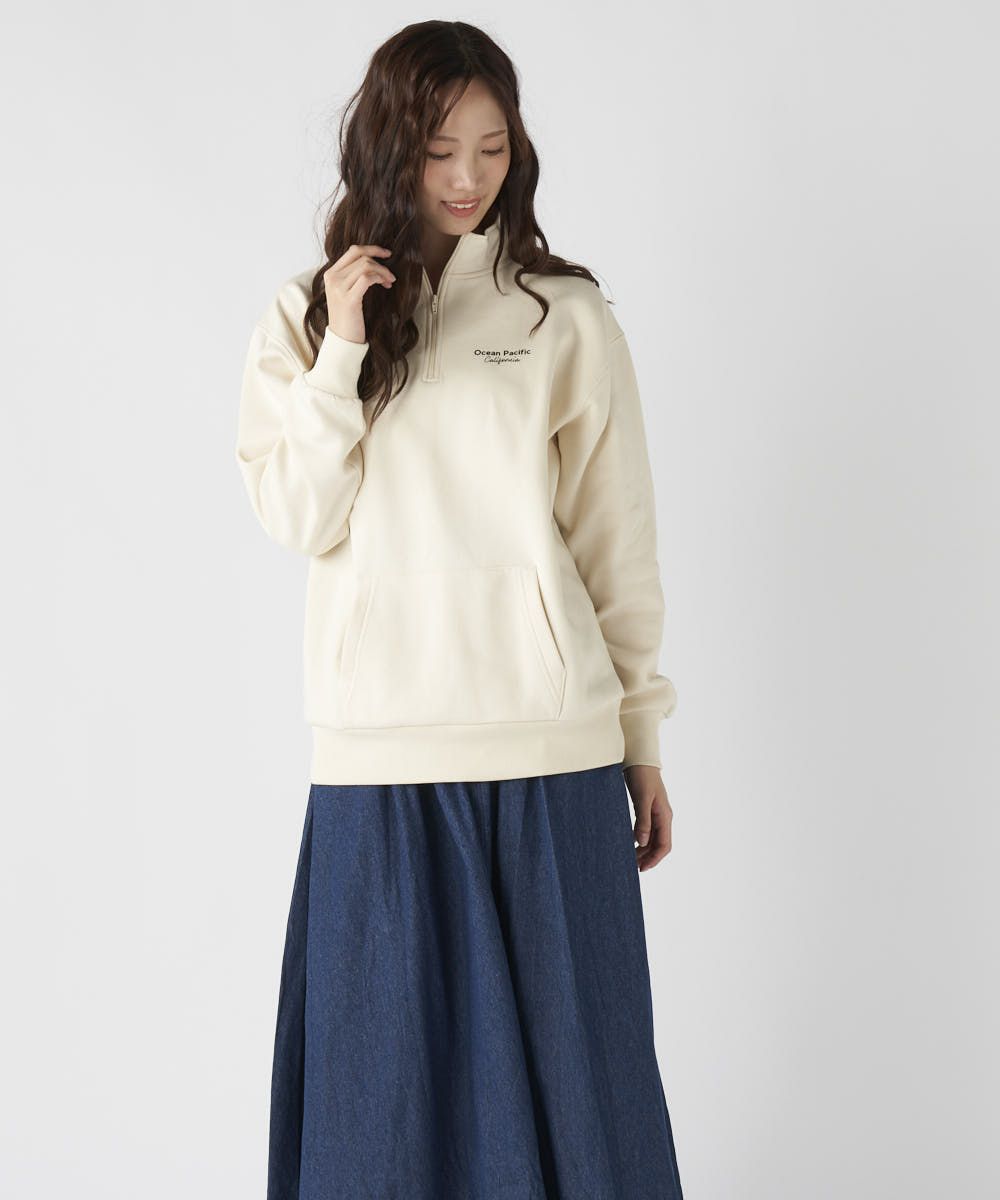 レディース 裏起毛スウェットハーフジップ