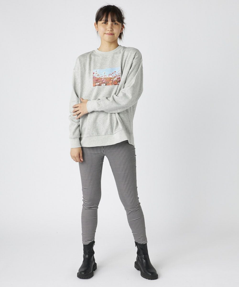 柔らかくふんわり裏起毛で保温性◎軽量でもしっかり暖かく、ゆったりシルエットでストレスフリーな着心地鮮やかな花畑のフォトが目を引く、アート感たっぷりのスウェットです。自然の美しさと心地よさをそのまま切り取ったような、1枚で存在感のあるアイテム。ふわふわの裏起毛で、寒い季節もぬくもりキープ。チクチク感のない柔らかな肌触りで、リラックスして着られる。