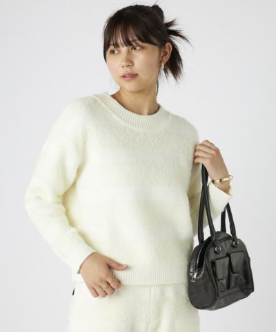 ふわふわのシャギーニット素材が心地よく、リラックス感とトレンド感を兼ね備えたボーダーニット!