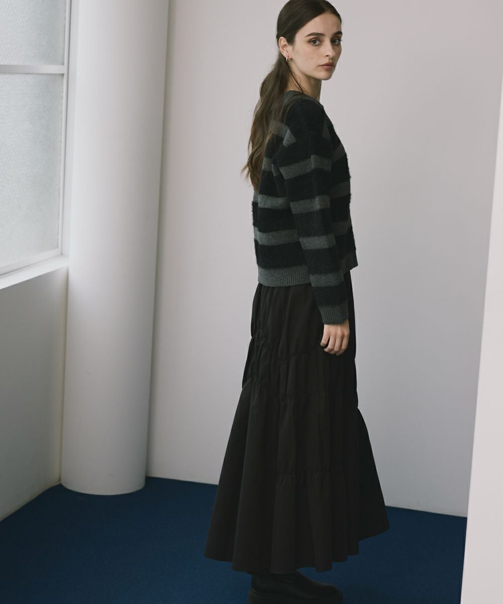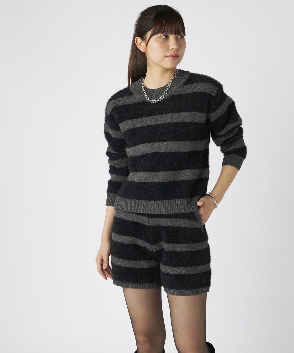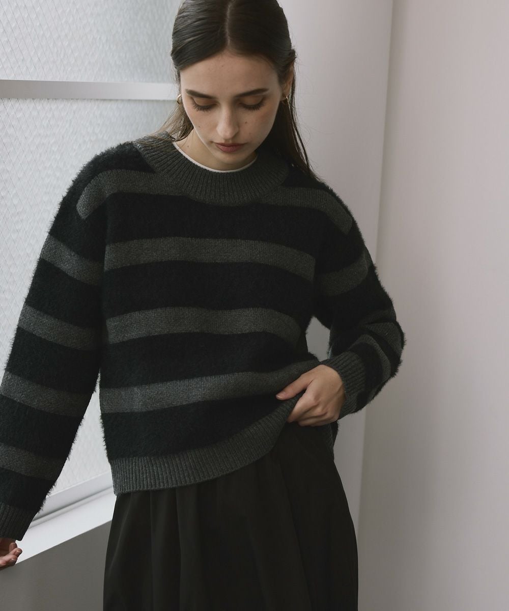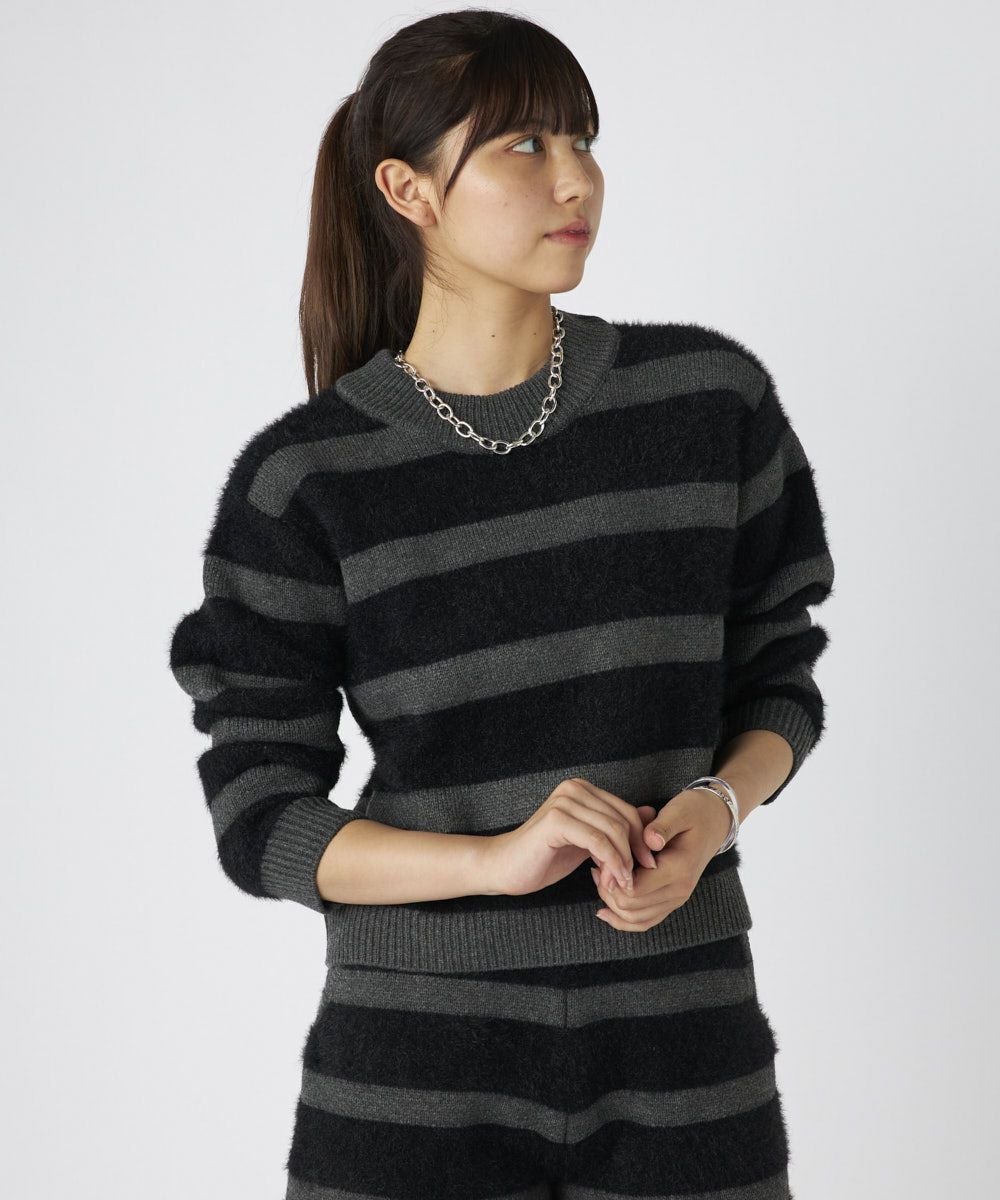ふわふわのシャギーニット素材が心地よく、リラックス感とトレンド感を兼ね備えたボーダーニット!