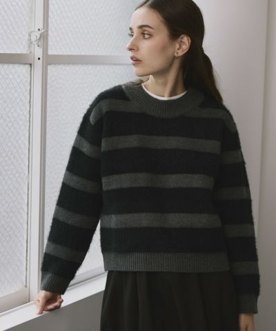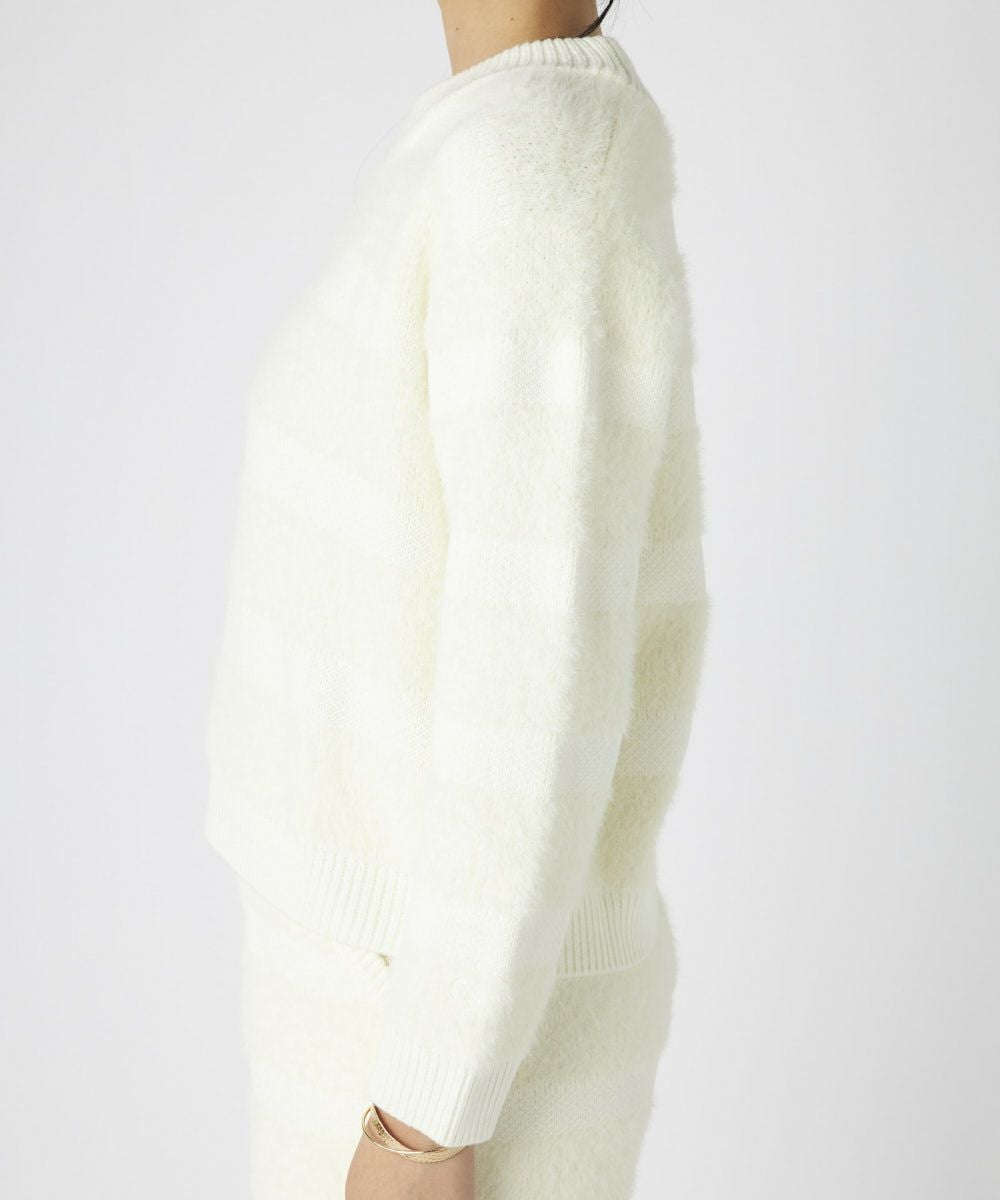 ふわふわのシャギーニット素材が心地よく、リラックス感とトレンド感を兼ね備えたボーダーニット!