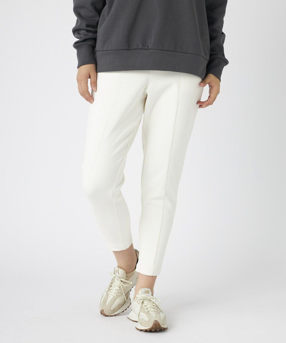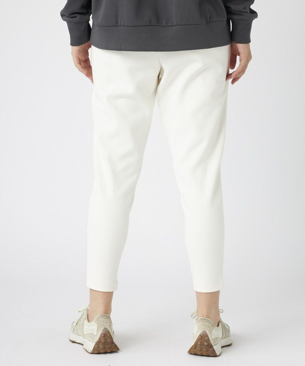 ペアテックスダンボールは軽量で温かく、UVカット付き、伸縮性があり、シワになりにくくお家でのお手入れも簡単。程よいハリ感と上品な立体感が魅力のダンボールニット素材を使用した、リラックス感と美シルエットを兼ね備えたイージーパンツ。ウエストは総ゴム仕様で穿き心地ラクラク、内側にはドロストコードが付きサイズ調整も自在。どんな体型にも優しくフィットします。