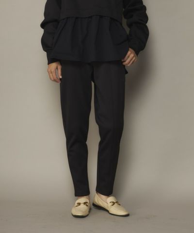 ペアテックスダンボールは軽量で温かく、UVカット付き、伸縮性があり、シワになりにくくお家でのお手入れも簡単。程よいハリ感と上品な立体感が魅力のダンボールニット素材を使用した、リラックス感と美シルエットを兼ね備えたイージーパンツ。ウエストは総ゴム仕様で穿き心地ラクラク、内側にはドロストコードが付きサイズ調整も自在。どんな体型にも優しくフィットします。