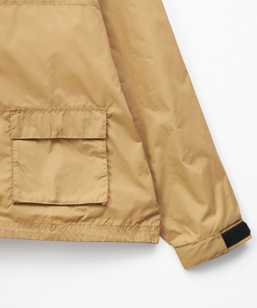 軽量で薄手のウインドブレーカー。バックのブランドロゴがアクセント。シンプルなデザインで使いやすい1枚。