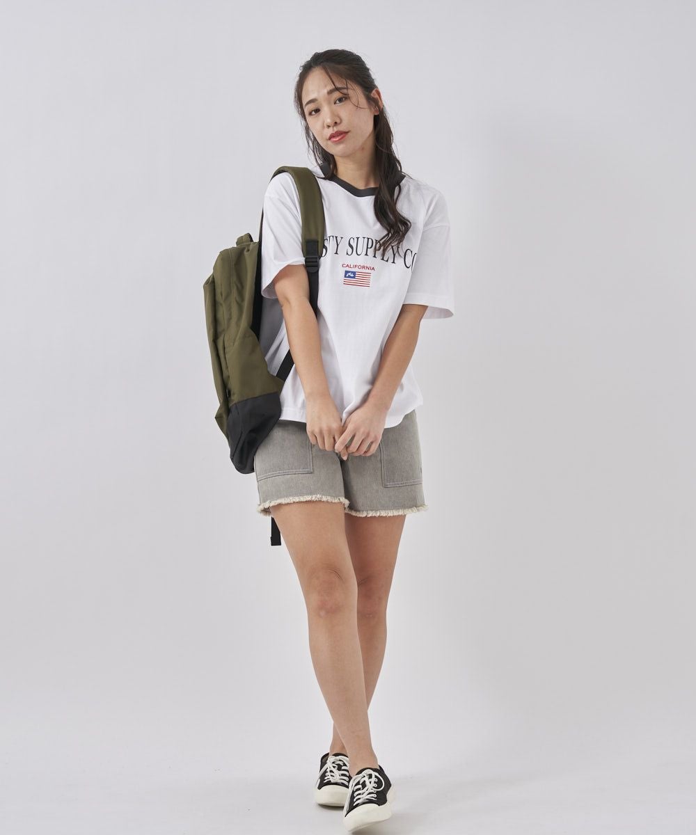 首元にはカラーラインを施し、アメカジテイストをプラスした1枚。