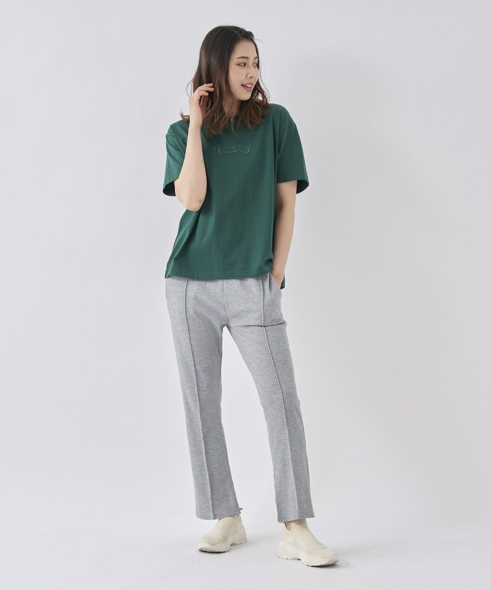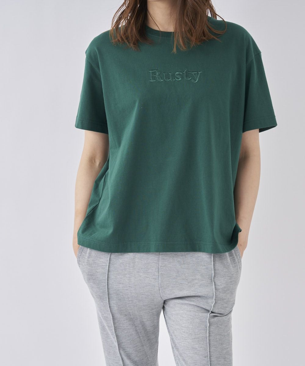 フロント/バックともに同カラーの刺繍ロゴがデザインされた一枚。