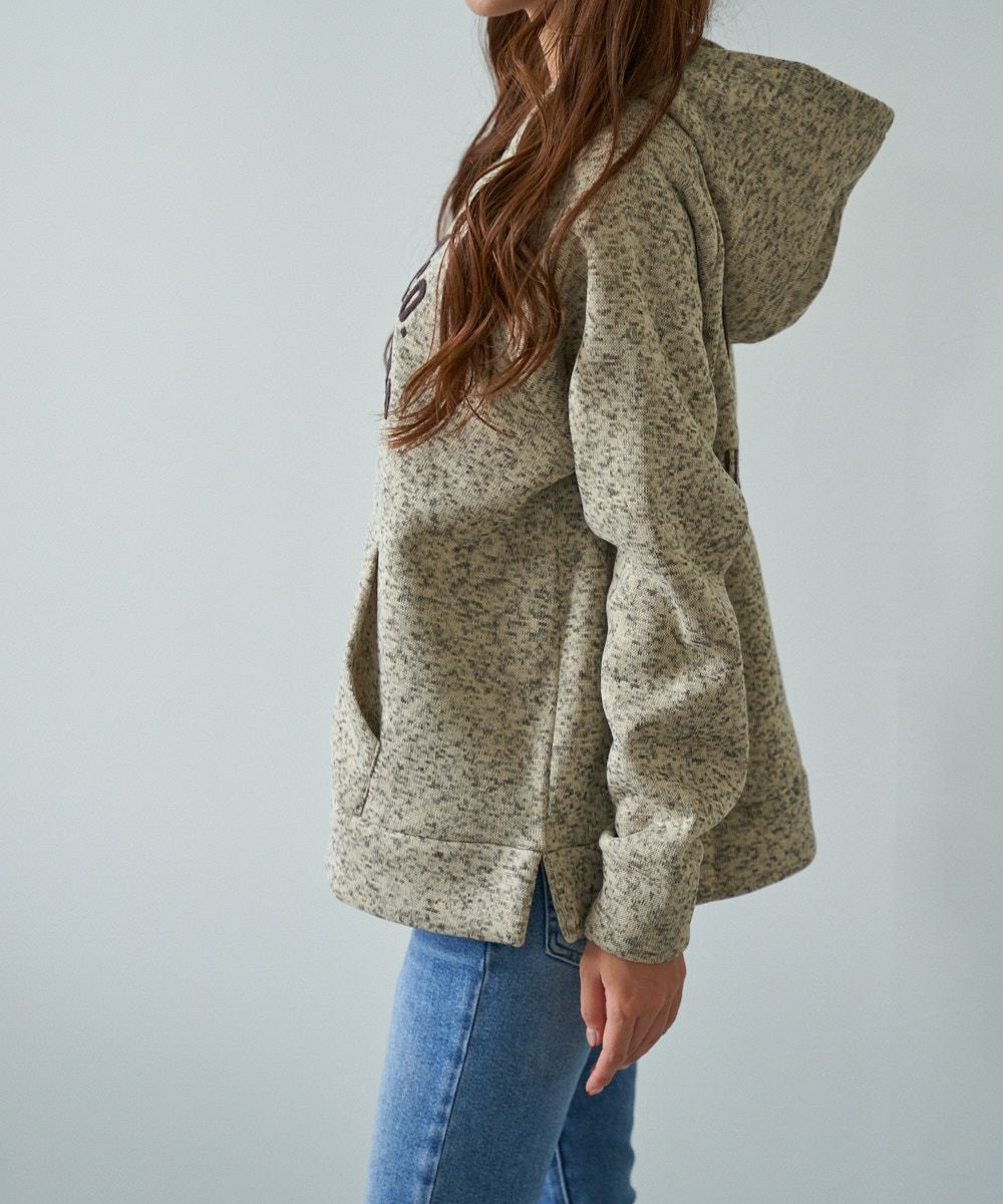 あったか裏起毛のニットフリースプルオーバーパーカー。