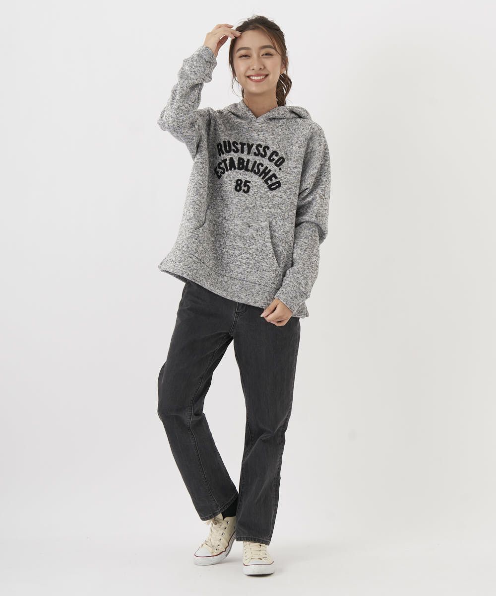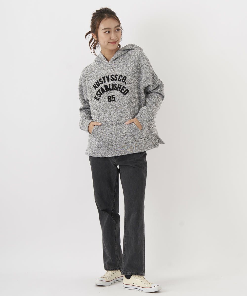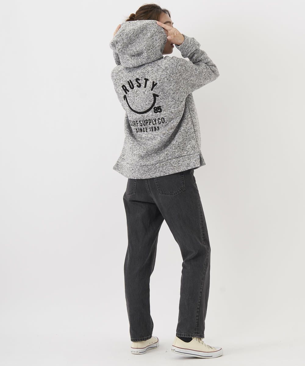 あったか裏起毛のニットフリースプルオーバーパーカー。