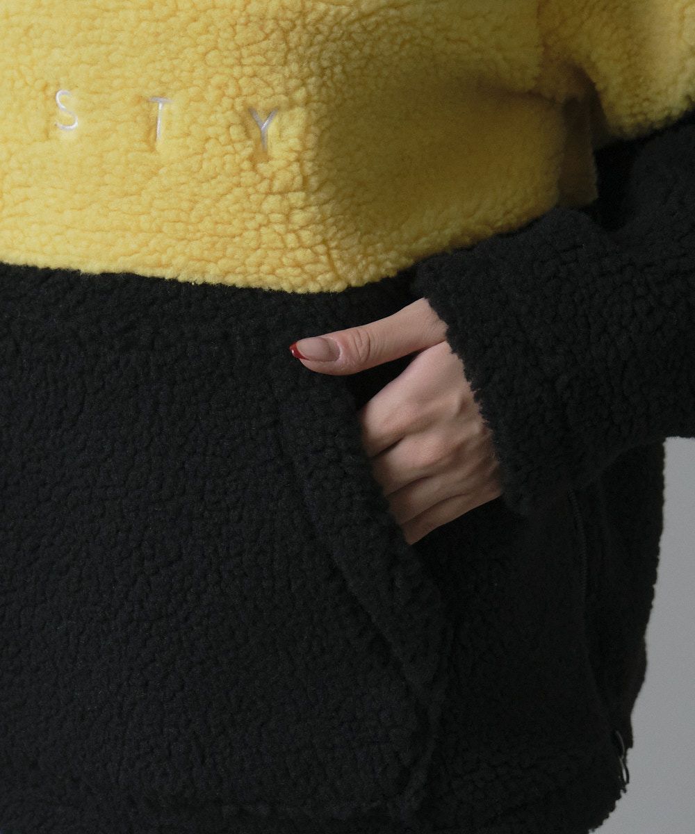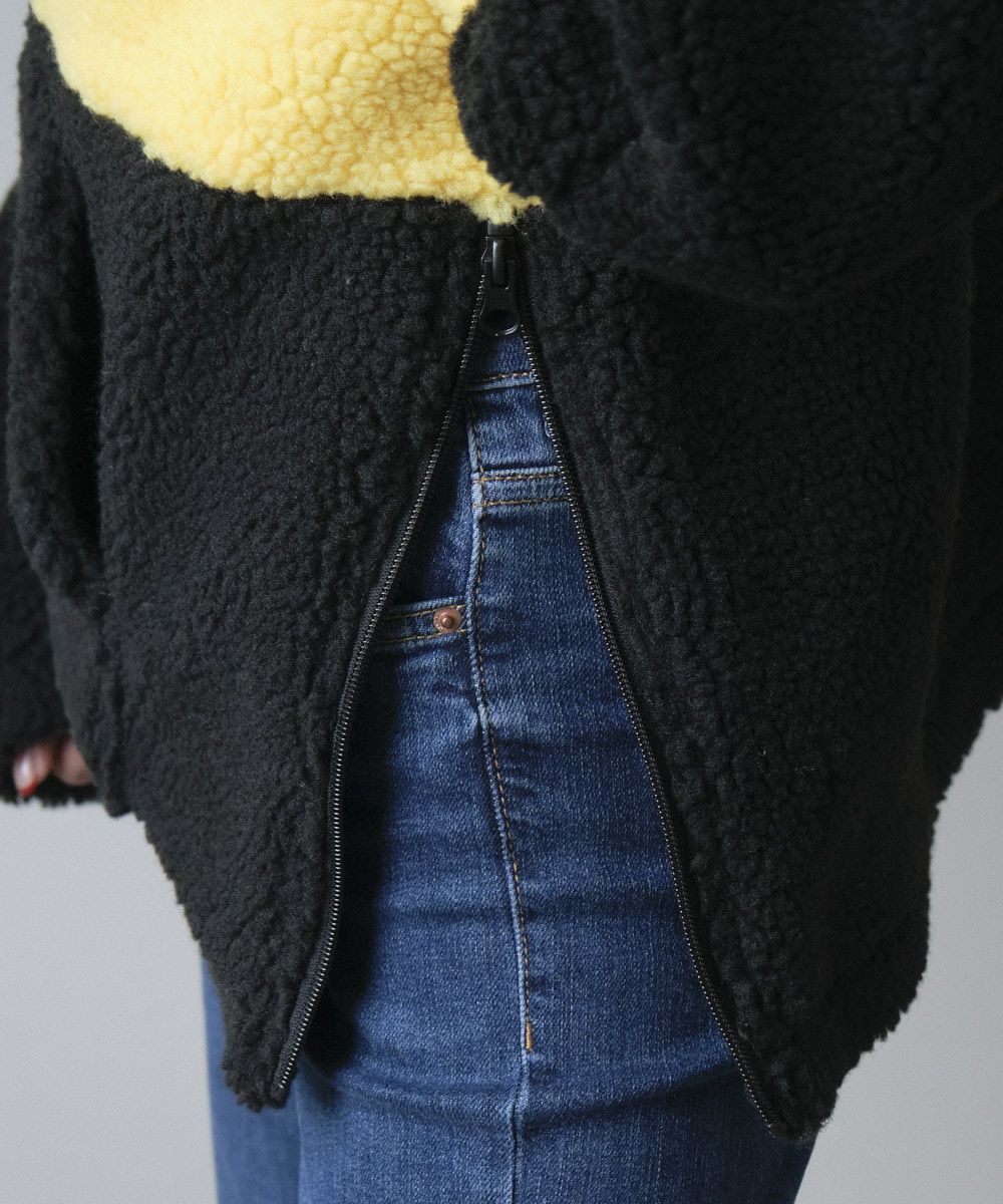 襟元のハーフジップは上まで閉めると防寒対策として、