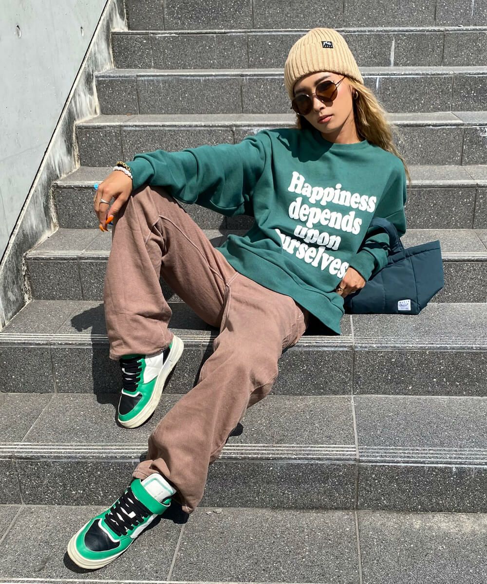 大きめロゴでシンプルになりすぎず着こなせるクルースウェット。湿気を素早く吸収して熱に変換する素材を使い、いつでもあたたかな着心地を叶えます。