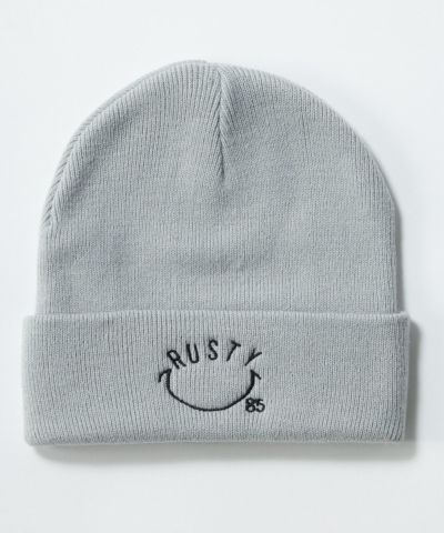 ニコちゃんの刺繍がかわいいビーニー。おしゃれのワンポイントに。
