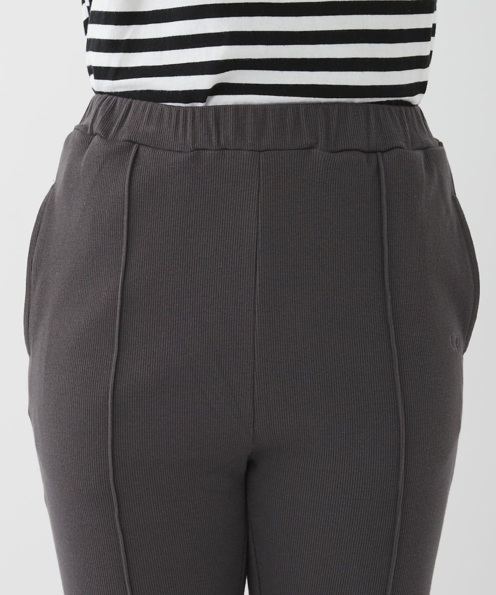 センターにピンタックを入れたリブ素材のイージーパンツ。オーバーサイズのTシャツやスウェットとのコーデがおすすめ。