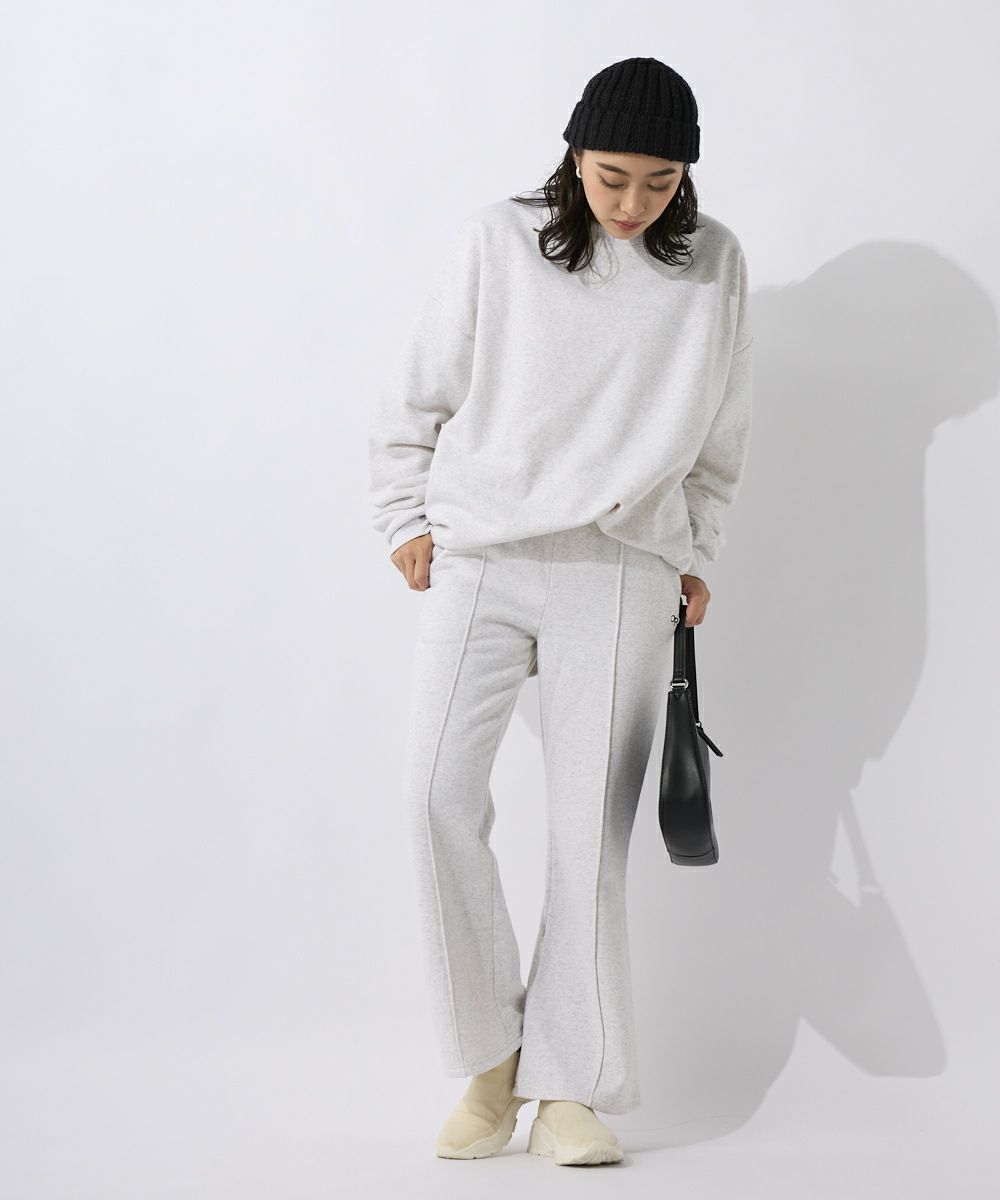 柔らかくてあったかい裏起毛素材を使用したスウェットパンツです。履きやすさや動きやすさもばつぐん。センター切り替え入りで、楽してきれい見えが叶う、この秋冬におすすめの1枚です。