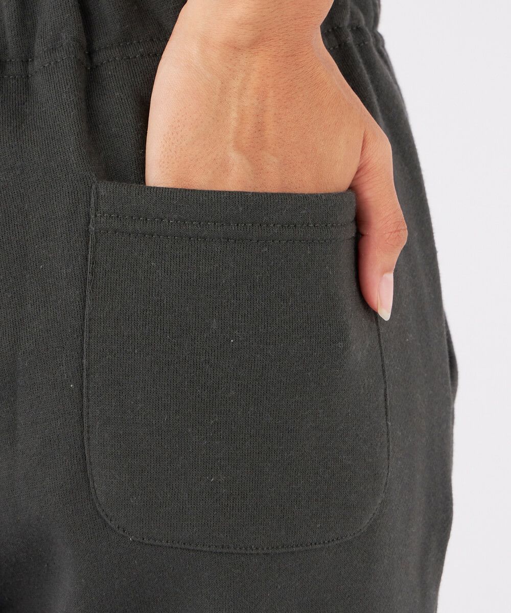 ウエストはゴム仕様で柔らかい裏起毛素材のゆったりとしたシルエット。裾ゴムで足元はスッキリ見せられます。同素材のトップスとセットアップコーデもおすすめ!スポーツにも普段着にも部屋着にもリラックスできるカジュアルコーデを楽しめます。シンプルなデザインなのでボトムとして着回しに使いやすい1枚です。