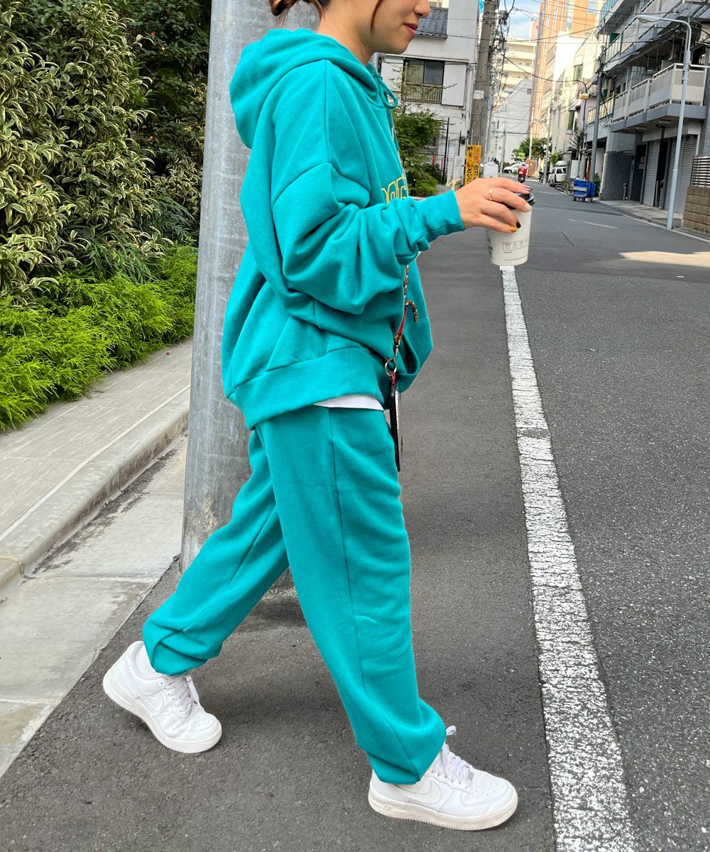 定番の履き易いシルエットの裏起毛の暖かスウェットパンツ。