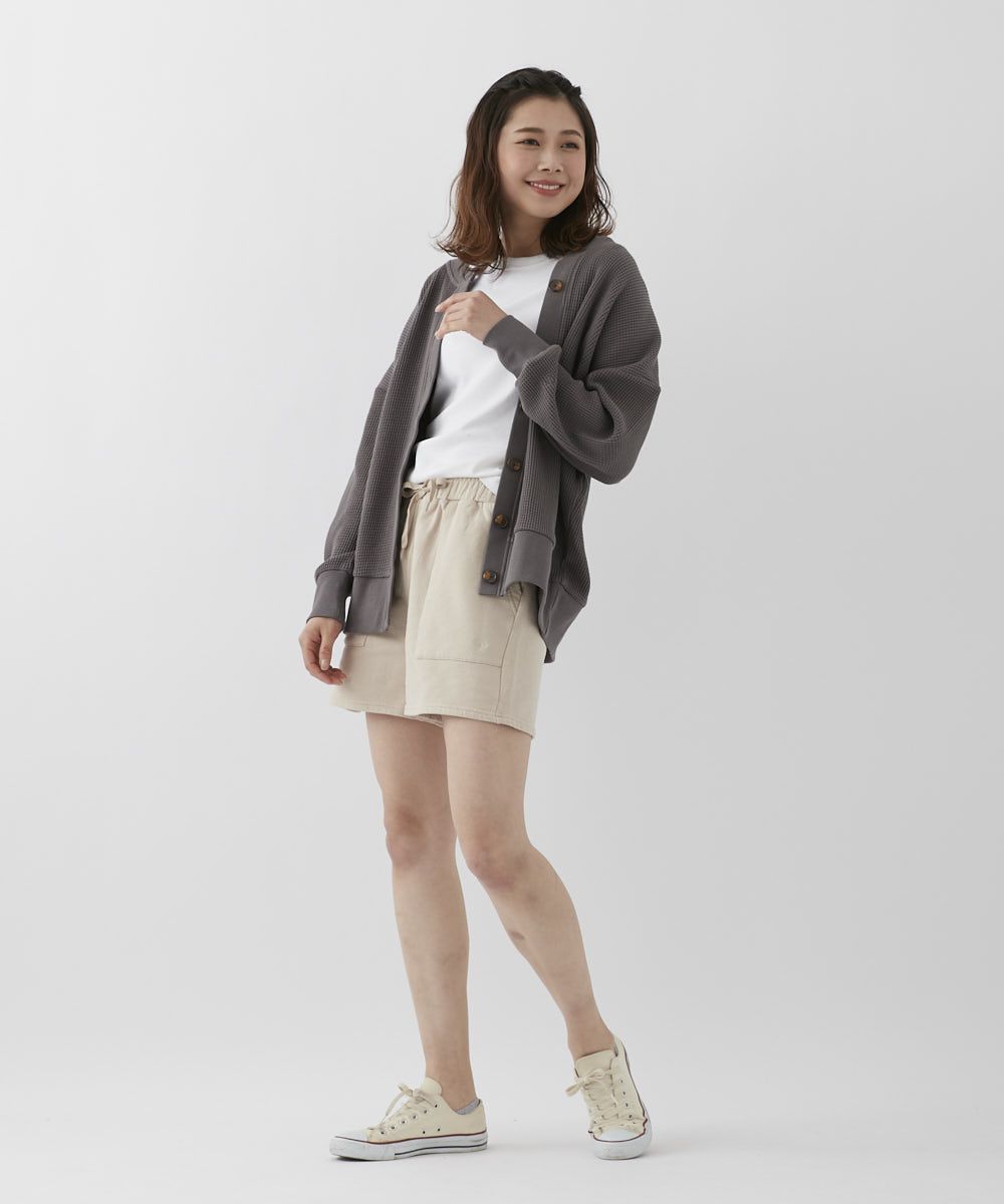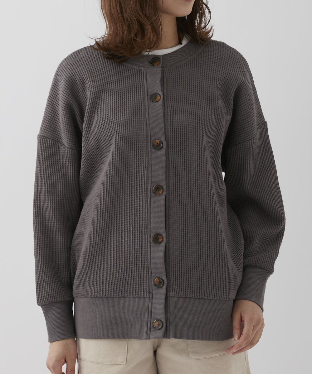 薄すぎず厚すぎず、程よい生地感が春らしい凸凹ワッフル素材のカーディガン♪