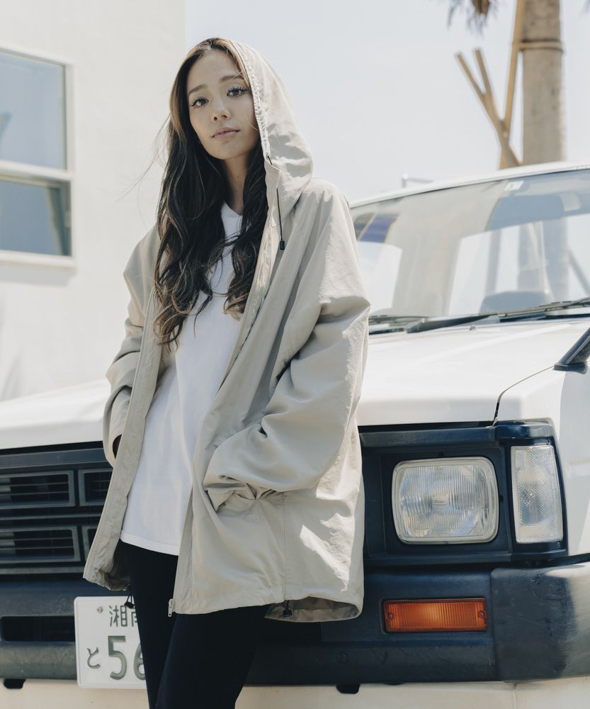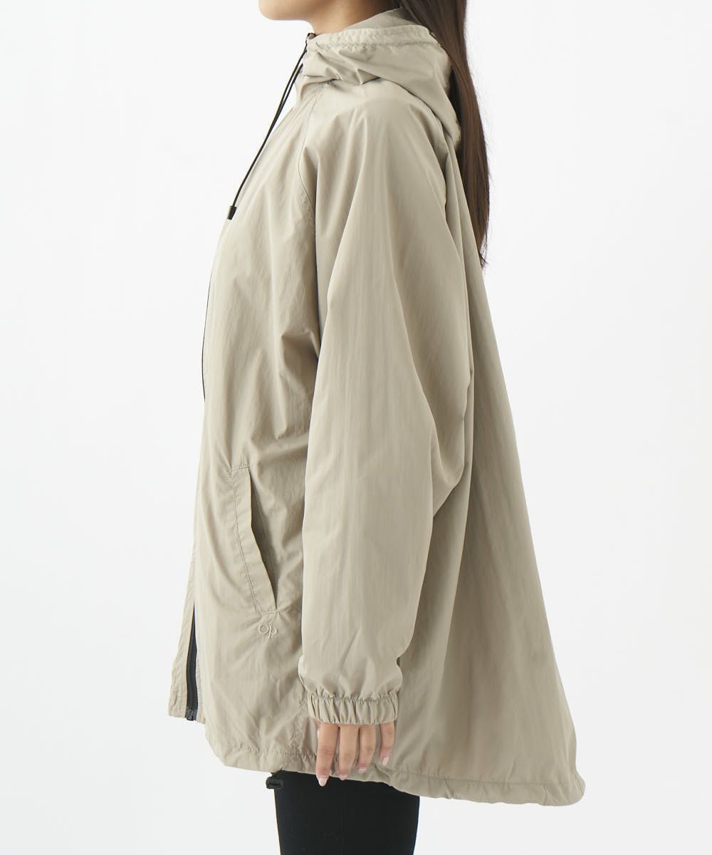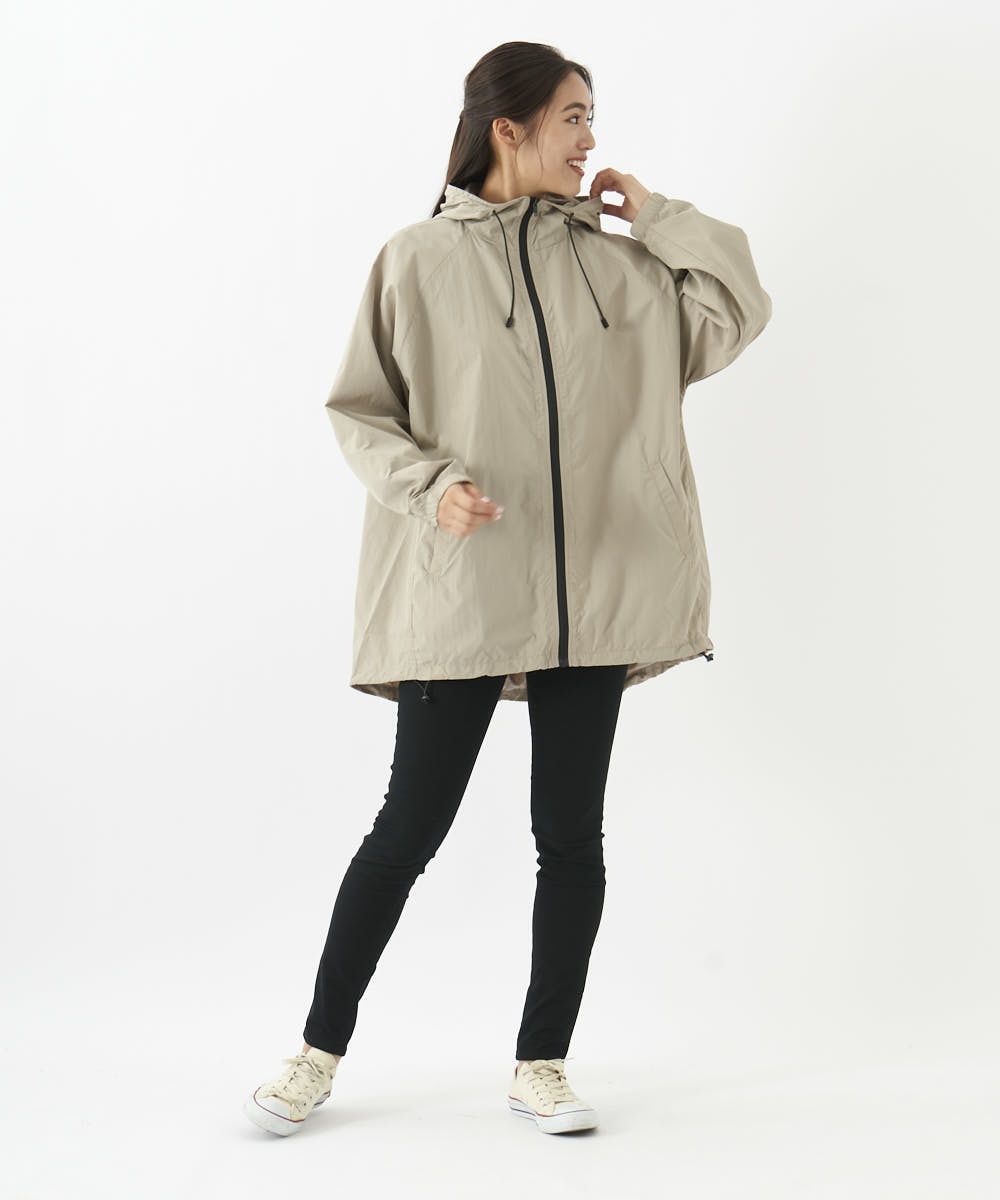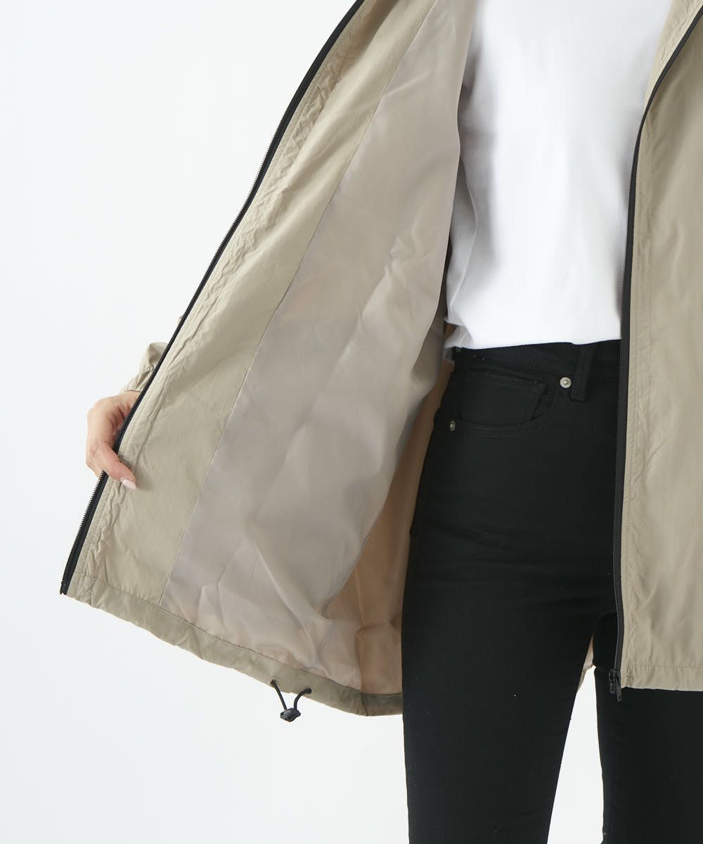 後ろ長めのお尻が隠れるシルエットでスッキリ。コードストッパーで裾を絞りシルエットを変えても可愛い。テフロン加工で撥水機能もばっちり。アウトドアやレジャーにも一枚あると大活躍のブルゾンです!