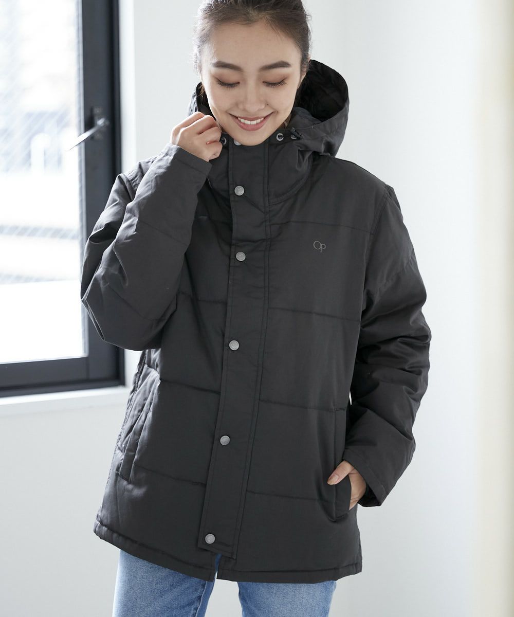 表地:ポリエステル65% 綿35% 裏地:ポリエステル100% 詰物:ダウン80% フェザー20% リブ部分:ポリエステル100%