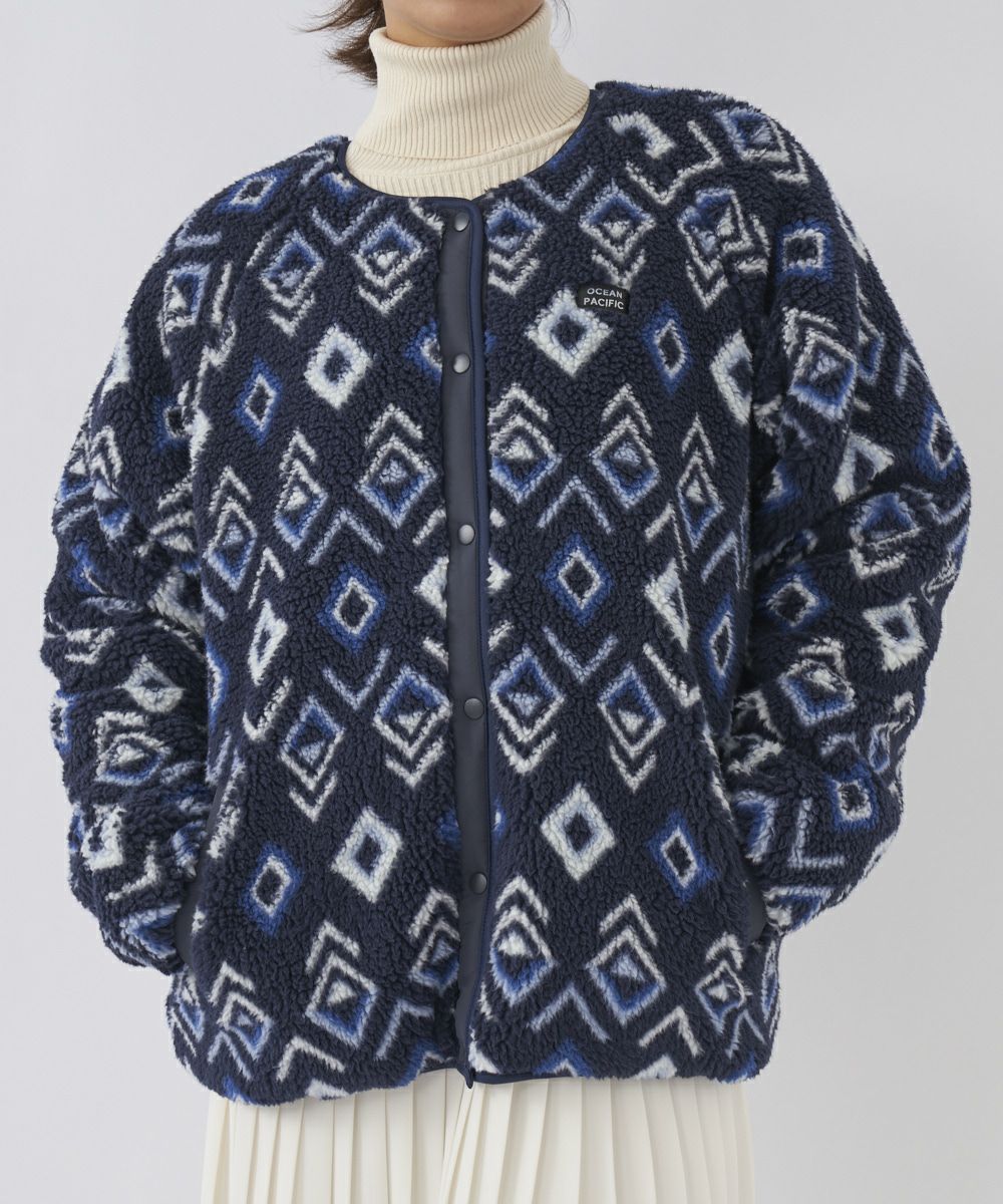 OPらしい個性的なエスニック柄のジャケットを着て寒さをのりきりましょう!