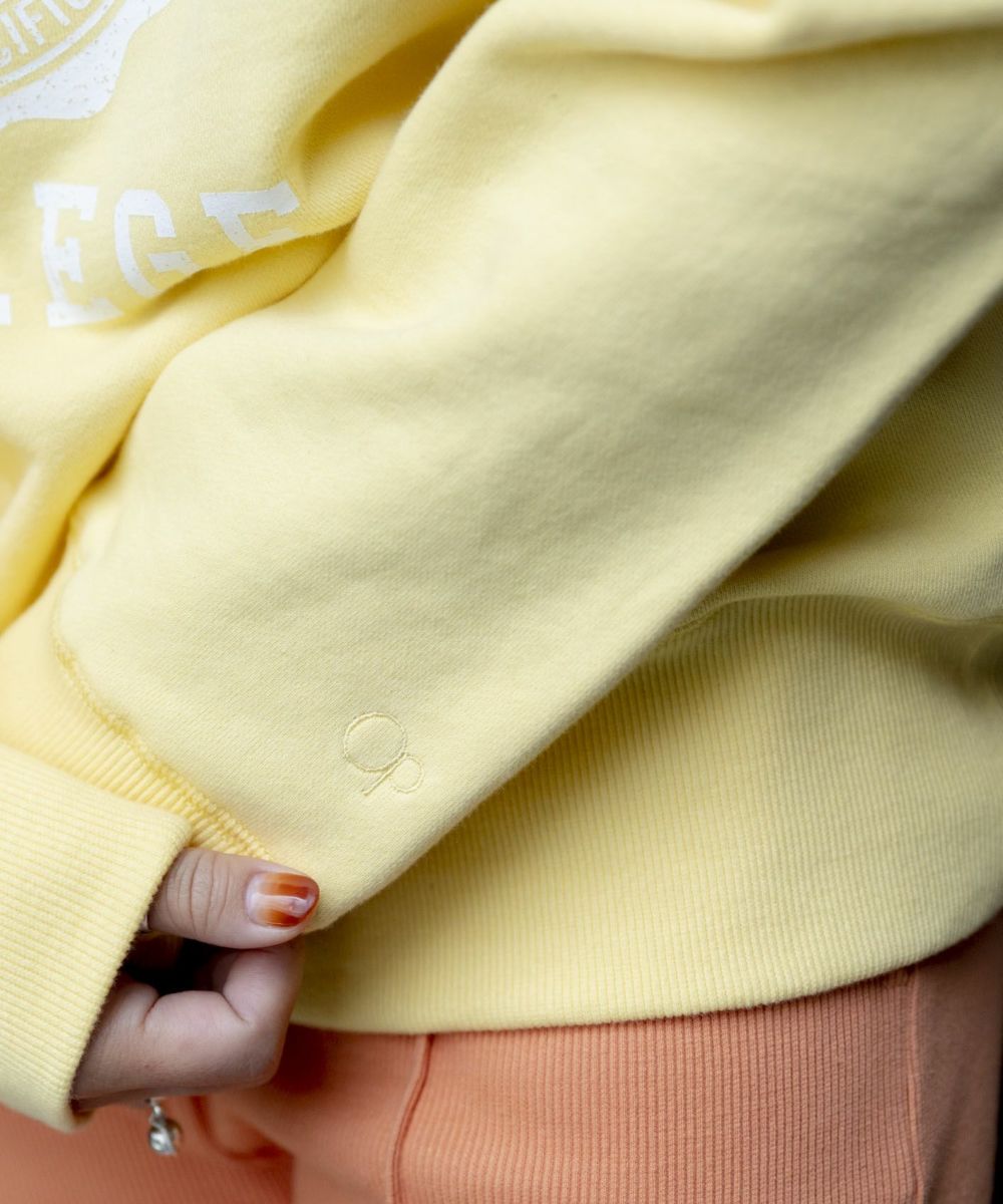 バイオウォッシュ加工によって、ヴィンテージライクな風合いを楽しめるカレッジスウェットです。かすれ調のロゴプリントが古着のようなこなれ感を演出。 ドロップショルダーなので、女性らしいリラクシーなスタイルにぴったりな1枚です。