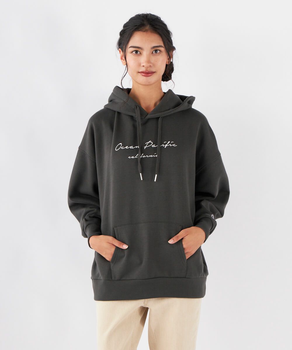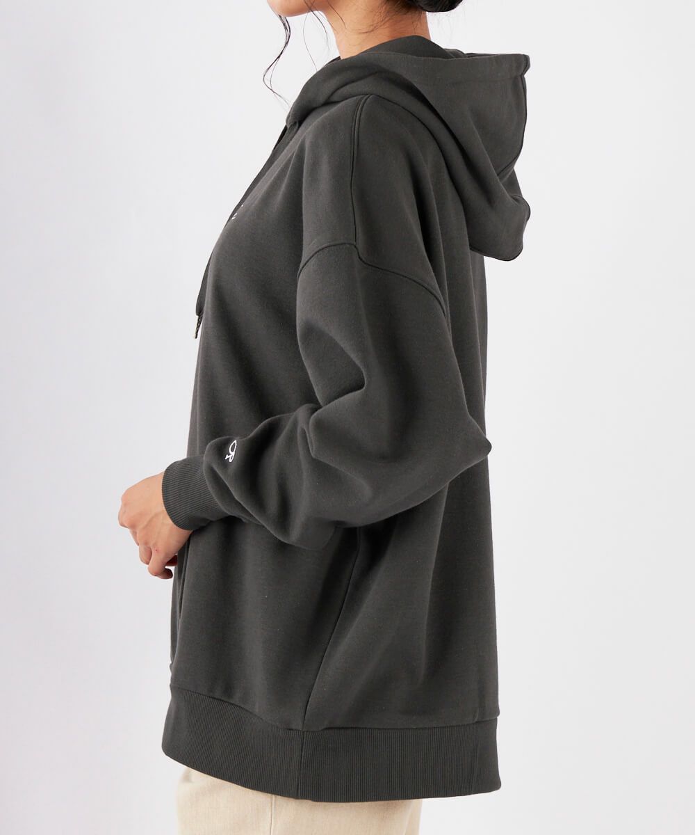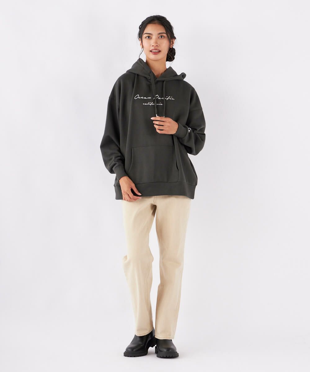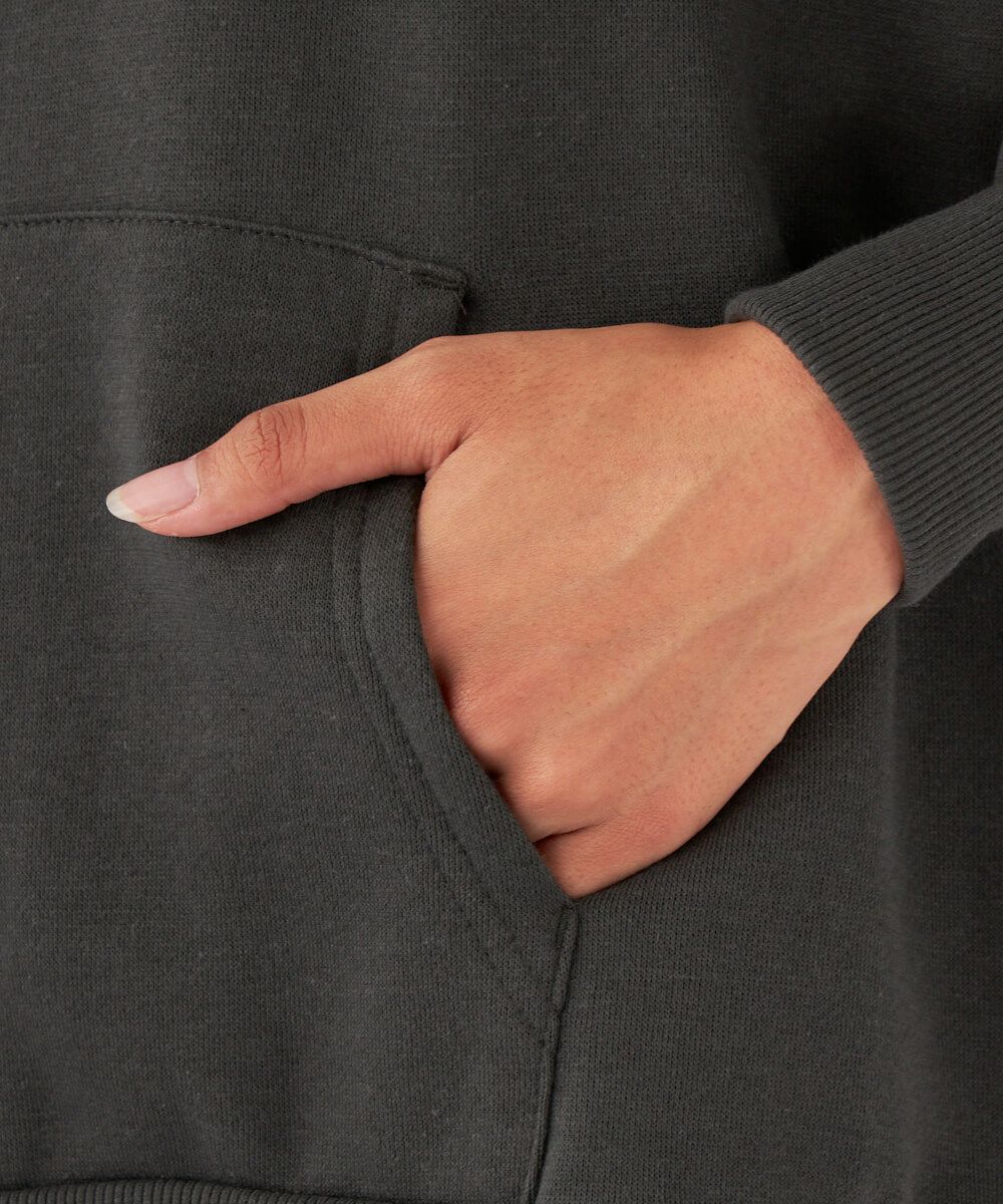さりげない筆記体のロゴプリントが上品なプルパーカー。ゆったりとした程よいオーバーシルエットで柔らかい裏起毛の生地がリラックス感漂う1枚に。