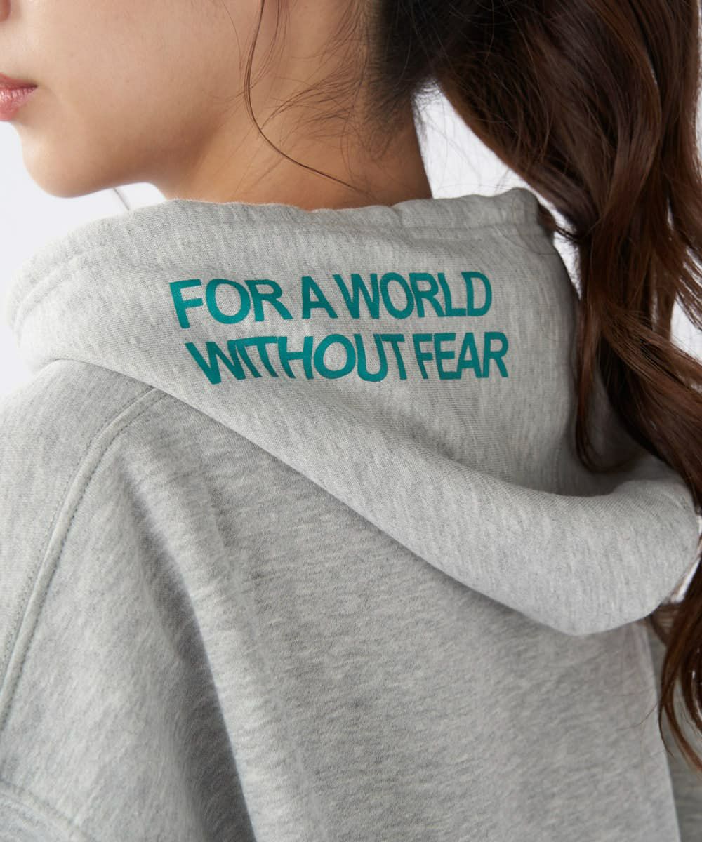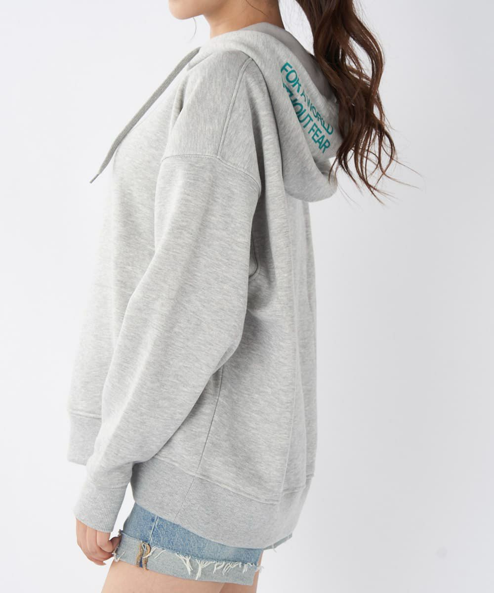 MサイズとLサイズとXLサイズの3サイズ展開で、レディースメンズ共に幅広く着用していただけます。フード部分にさりげなく入ったロゴプリントがポイント!