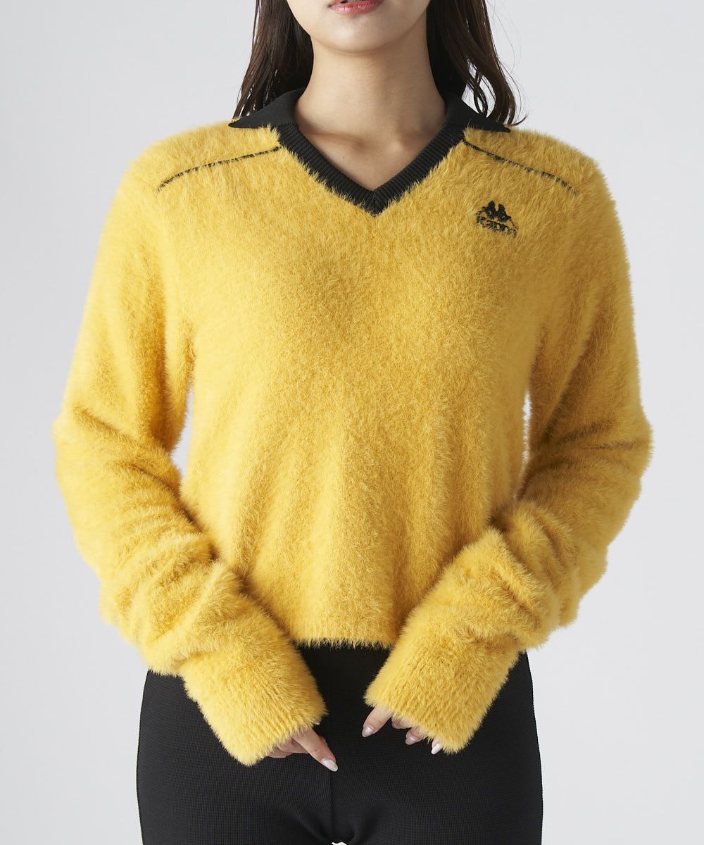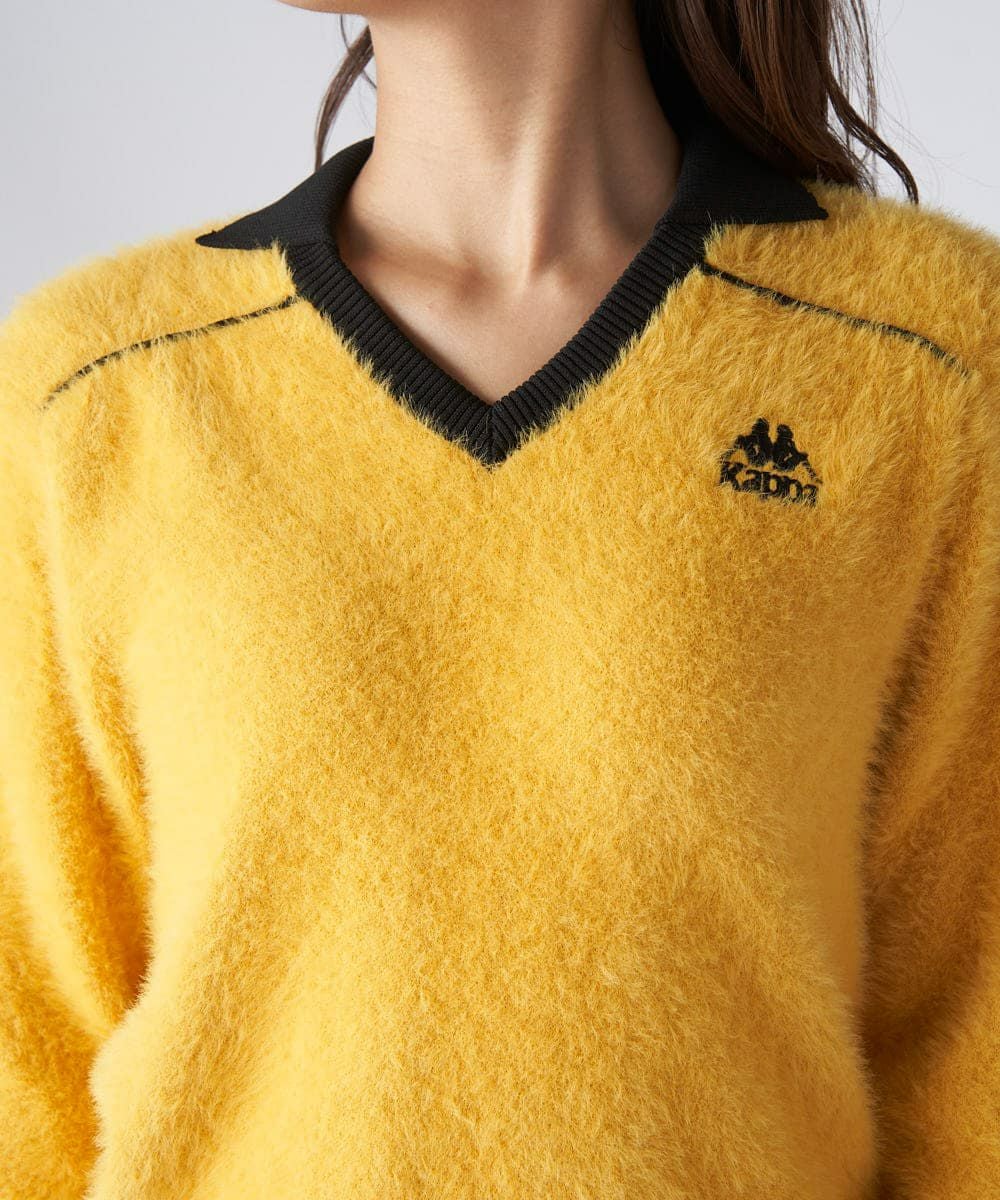 シャギーニット素材のゲームシャツテイストのロングスリーブシャツです。フットボールエッセンス を取り入れたトップスです。
