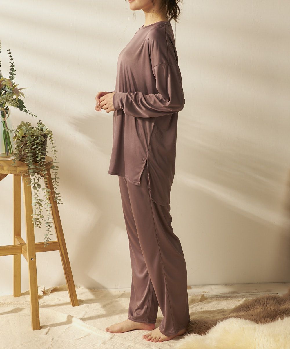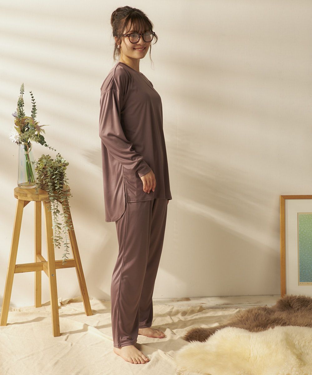 【NET限定】レディースセットアップ 犬や猫の毛がつきにくいルームウェア 静電気防止加工(長袖)