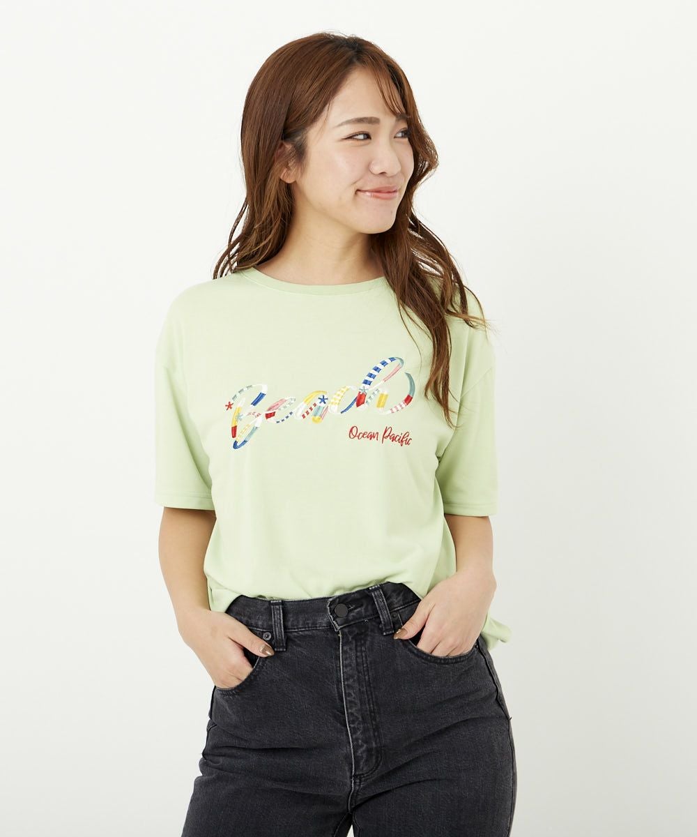 フロントの刺繍がポイントのTシャツ。サーフらしいカラーの糸を使い、立体的な刺繍をほどこした主役級のTシャツです。