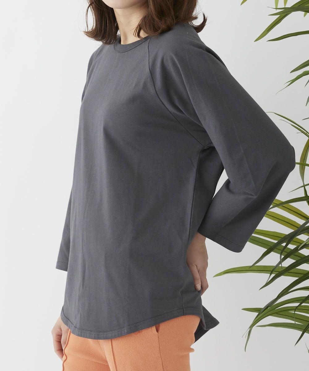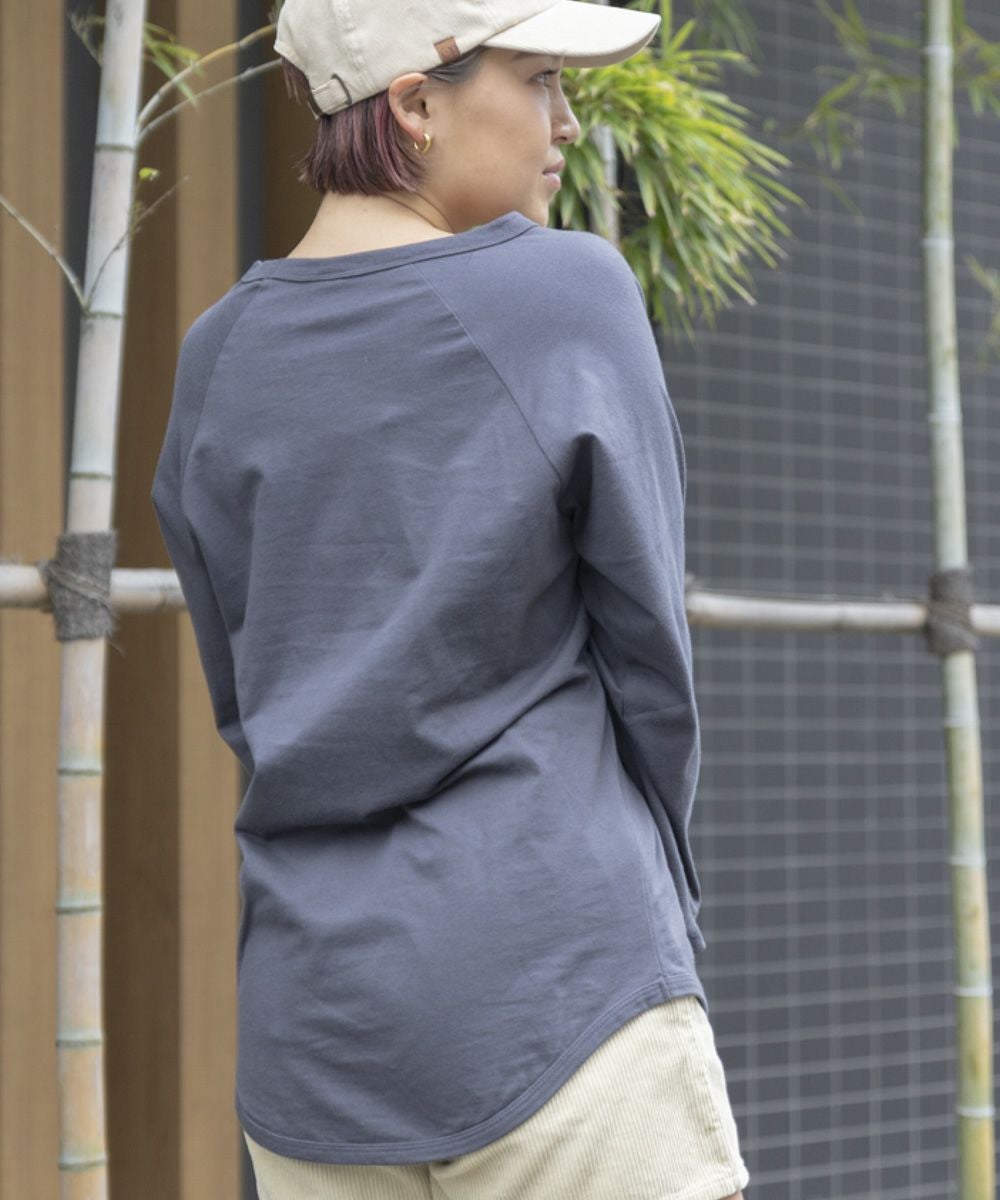 オーバーサイズのラグランロングスリーブT。ボールバイオウォッシュで表面に古着のようなネップ感で、古着ライクなコーデにも馴染む♪