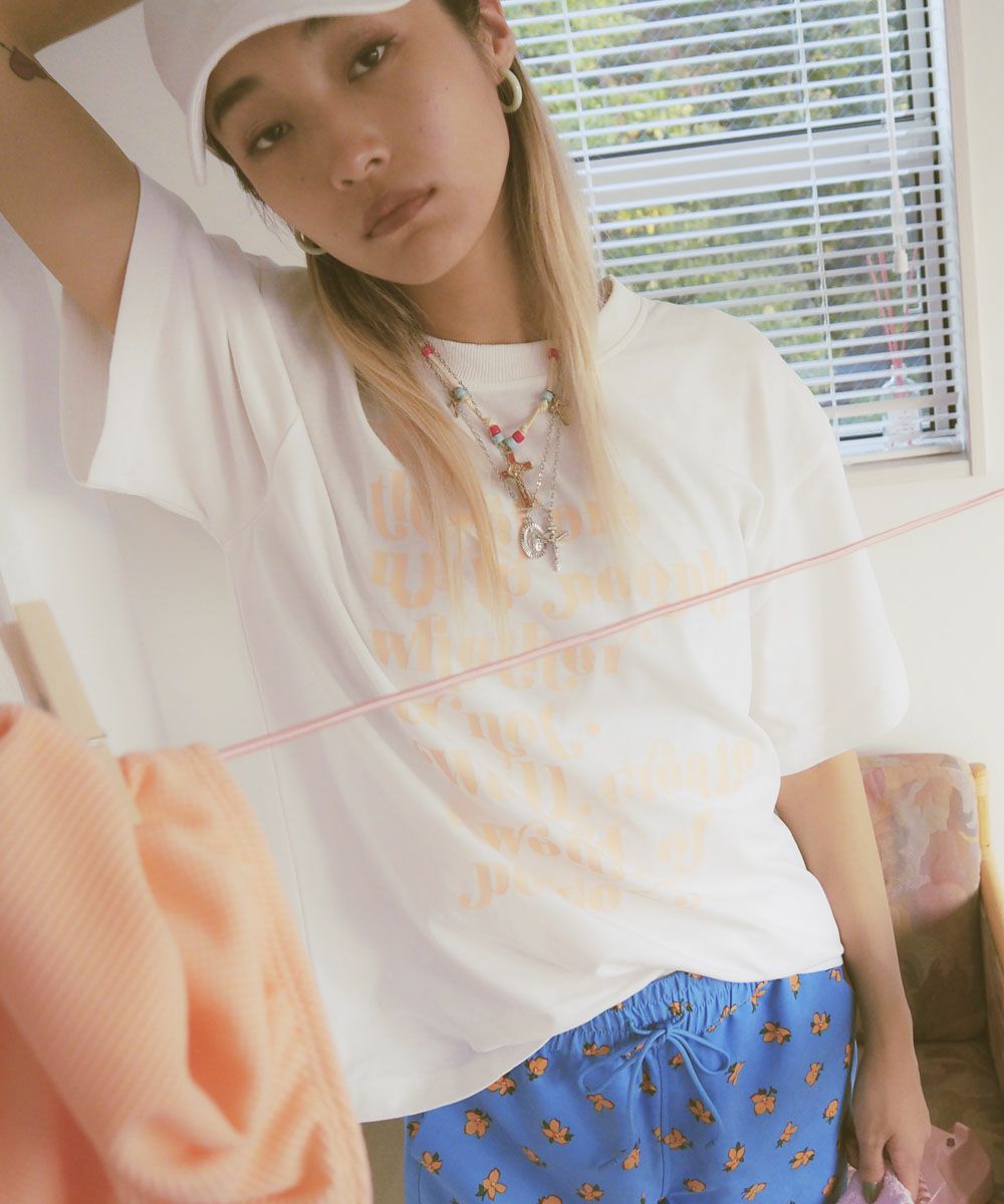 フロントもバックも前面にプリントをほどこした、今回のコラボの一押しTEEシャツ。バックのフォトはOPの70年代当時の写真を採用。サンディーらしいコラージュを入れて、22年バージョンにアップデート!