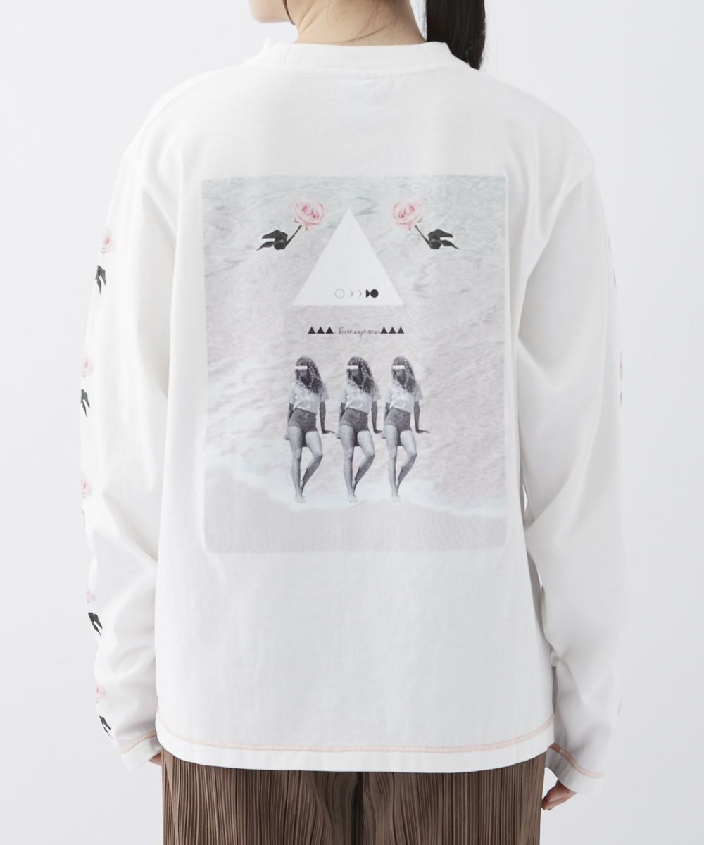 バックとスリーブにプリントをあしらったロンT。