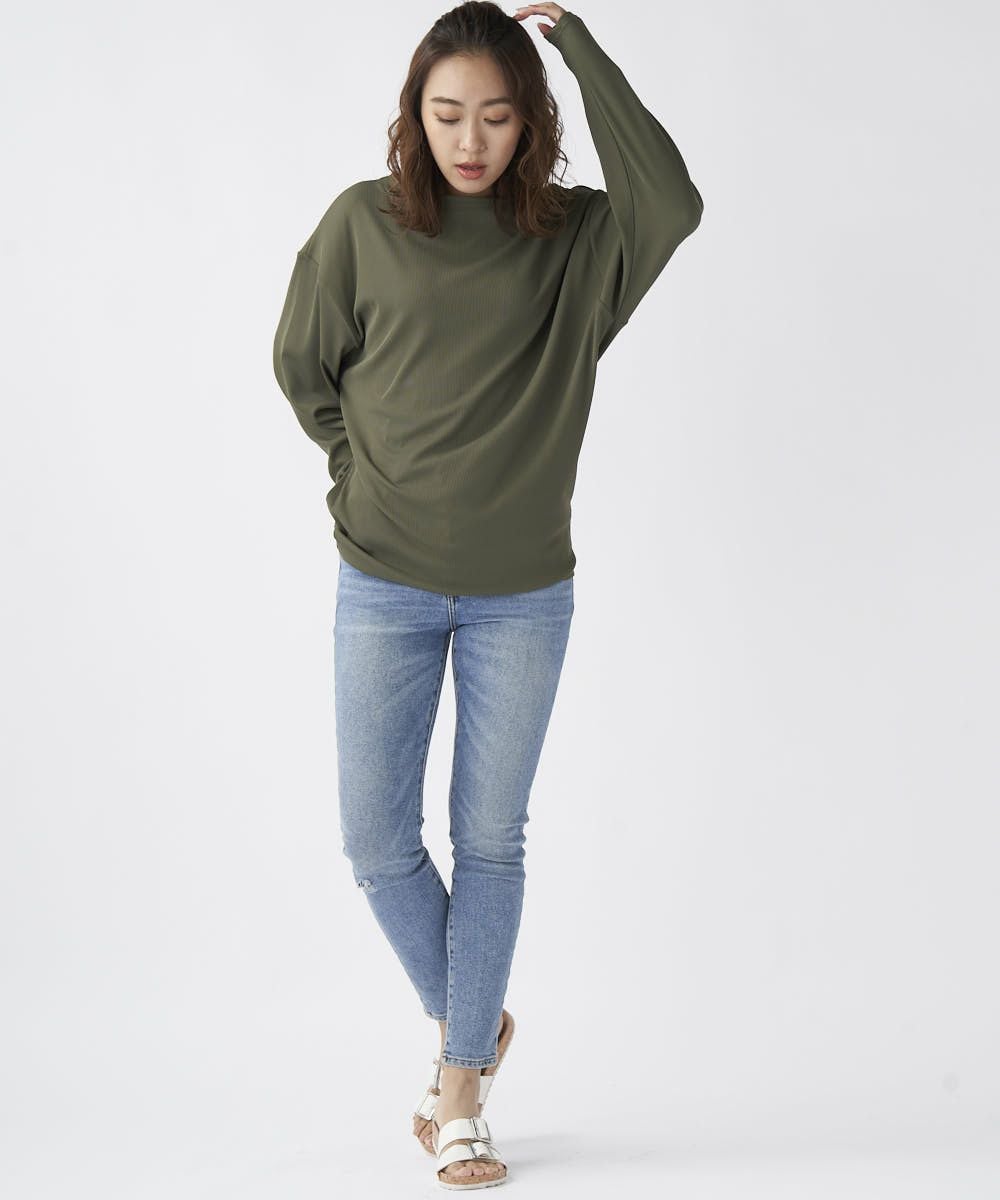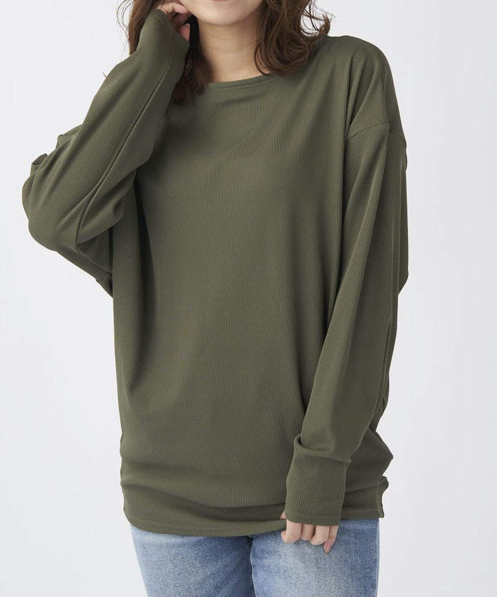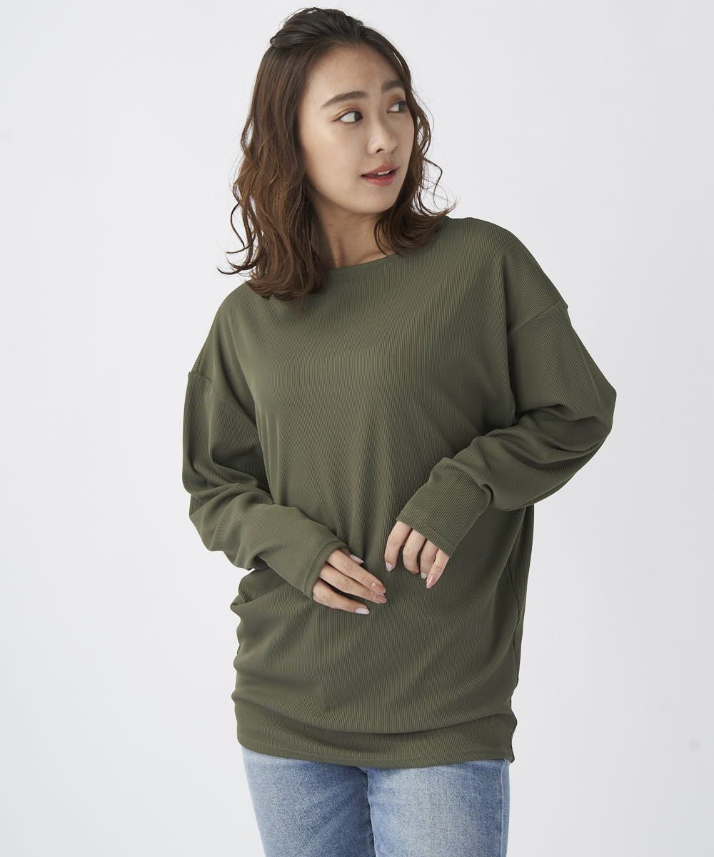 シワになりにくく透けにくく、凸凹としたリブの表面が肌にベタつくことなくサラッと涼しい素材です。ドルマンタイプで二の腕をカバー。 ゆったりしているので水着の上からもラッシュガード感覚で着用でき、ビーチサイドのリラックスタイムにもおすすめ。タウン着としてもゆるっと抜け感のあるコーディネートがおすすめ!