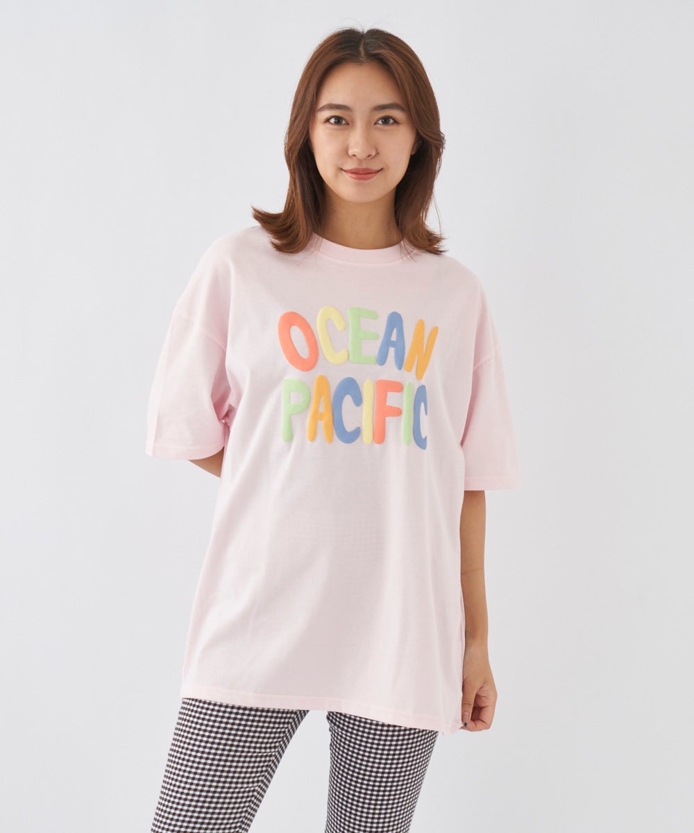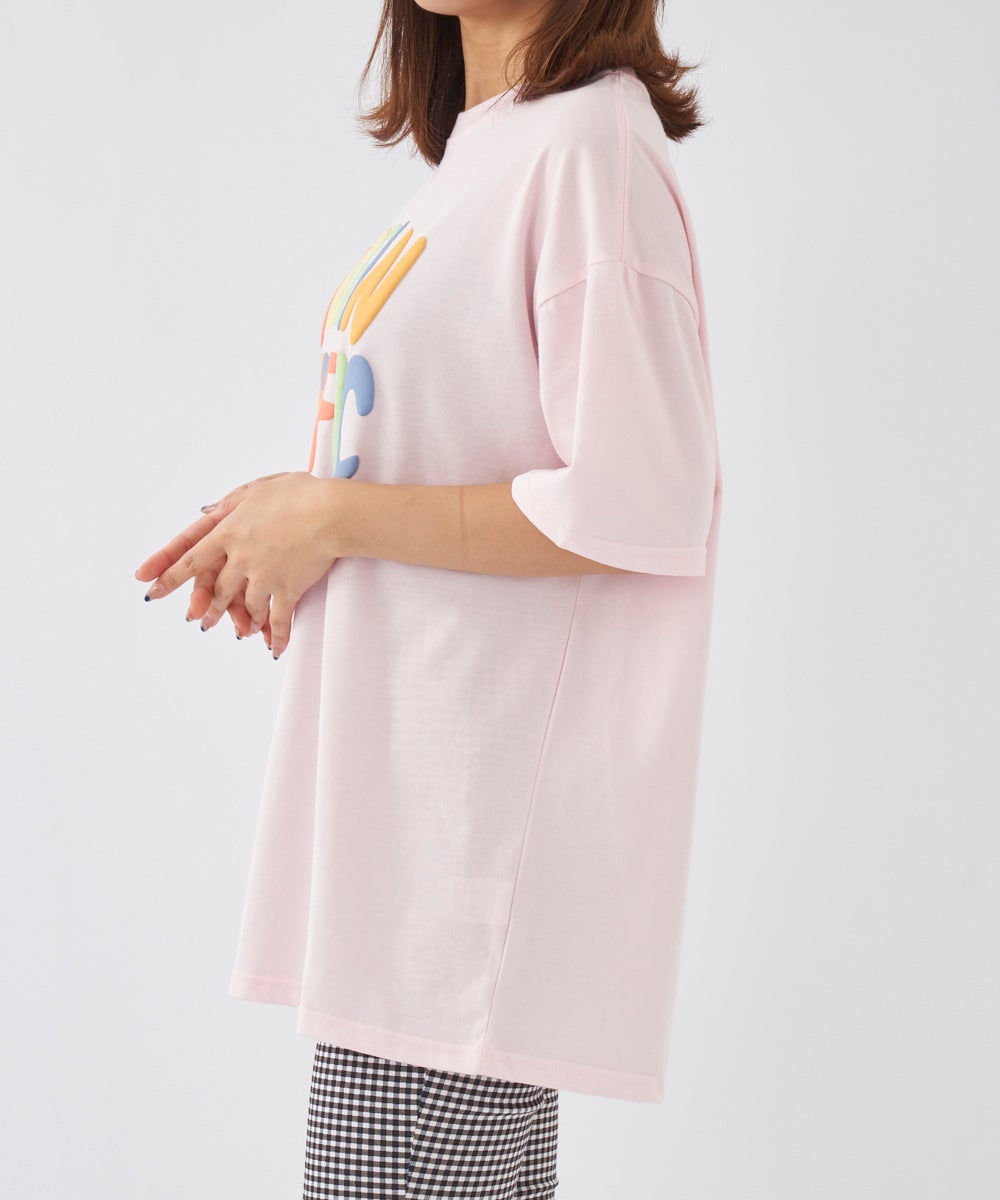 カジュアルにも水回りのレジャーにも使いやすいDRY天竺。カラフル発砲プリントで夏にぴったり! シルエットは人気のゆったりめです。
