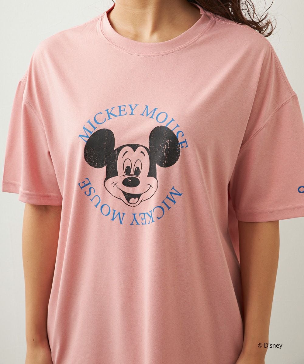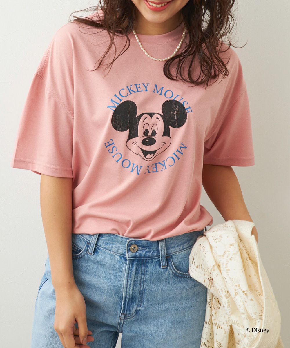レトロなミッキーマウスのフェイスプリントとサークルロゴがかわいい、着るだけでハッピーになれる1枚。