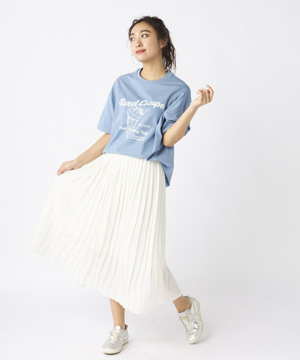 大人が一枚で着ても映える、色と形にこだわったポップなアイスクリーム柄のTシャツ。シルエットはベーシックなBOXタイプで少し幅広の大きめゆったりサイズに!