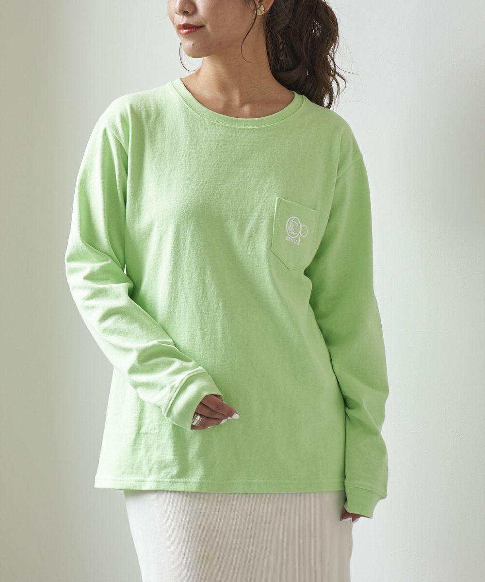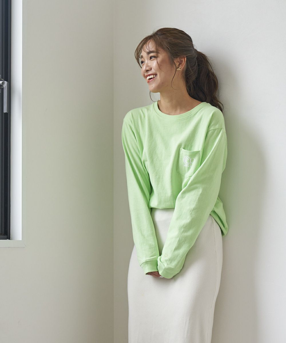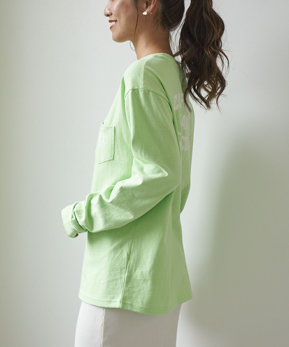 オーバーシルエットの胸ポケット付きロンT。バックロゴは高級感のあるフロッキープリント。